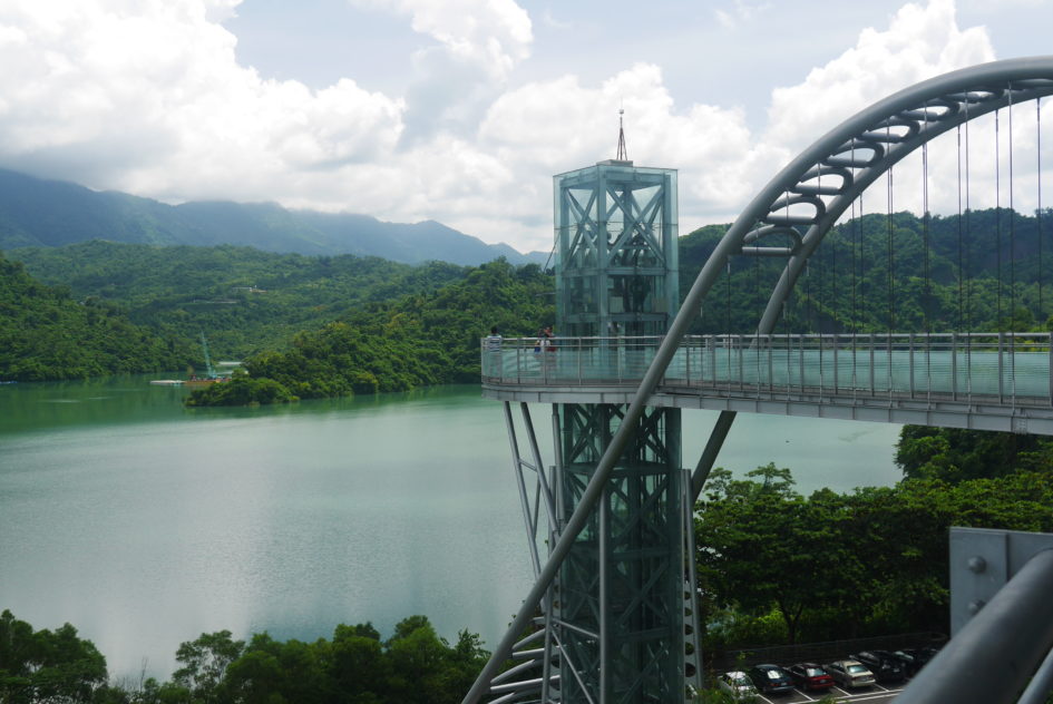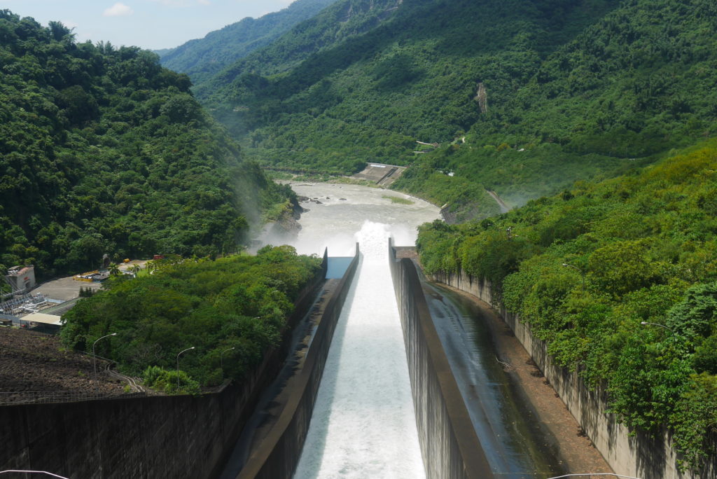 Today we continued our sightseeing in Tainan county, starting with Zengwen reservoir, a large man-made lake that provides irrigation for the Chianan plain (one of Taiwan’s most productive agricultural regions). We came up the river valley and our first view of the reservoir was the big dam with floodgates open and water flowing out. Luckily there was a viewing platform nearby and we stopped to snap a few pictures.
