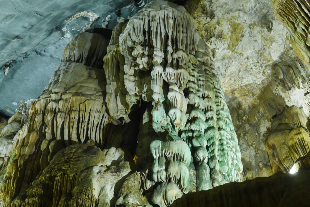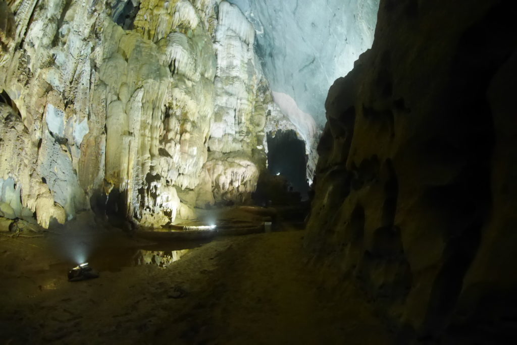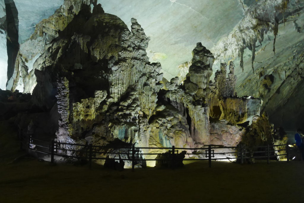 I normally don’t get hung over when traveling, I don’t know why but seems to work whenever I’m abroad. Yesterday I relied on this a bit too much and partied a bit too hard with some friends from the hostel. I had planned to take the bike and just ride around in the national park but when I woke up I was in no state to ride a motorbike. So, I skipped that and joined another cave tour instead. The Phong Nha cave is up the river from the village so the tour starts with a 45 minute boat ride through the rural landscape. In the dry season the boats also go inside the cave but now the water was too high so we had to walk. The cave is fairly similar to Paradise cave with lots of stalagmites and stalagtites and it’s lit up by electric lights. It’s pretty nice but in my opinion Paradise cave is more impressive. If you only have time for one cave in Phong Nha, go to Paradise cave.