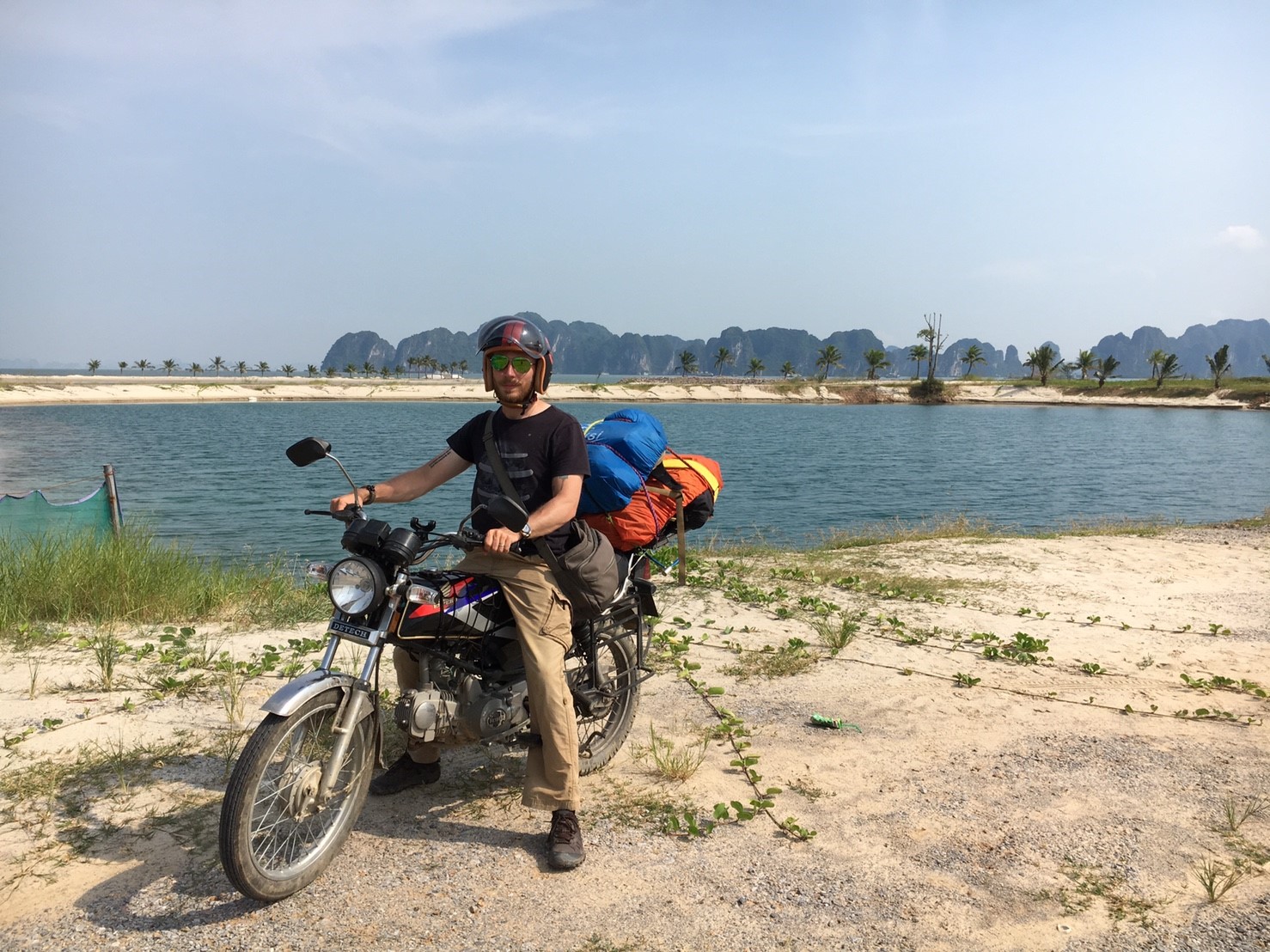 The next day we stuck both our bags in the motorbike and set off towards the coast. I worked better than expected to fit all our stuff on the bike but I think we can work out an even better way for coming days. There are boats out to Cat Ba island from both Haiphong and Halong but we wanted to bring the motorbike. The only ferry that takes vehicles leaves from a resort island a short distance from Halong city called Tuan Chau. The last ferry leaves at 3:00 pm so we drove all the way without too many stops. We reached the ferry terminal with plenty of time left but it’s better to wait than be in a huge hurry.