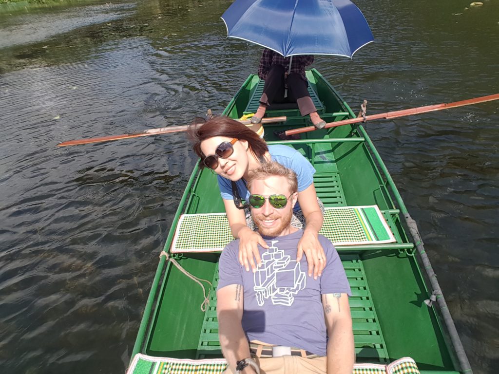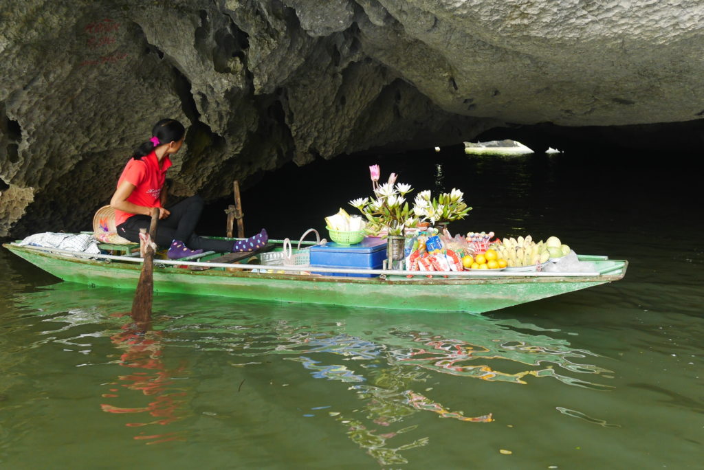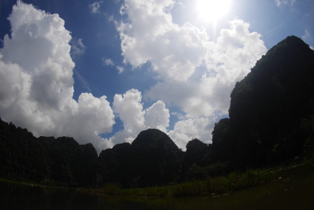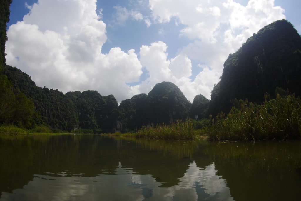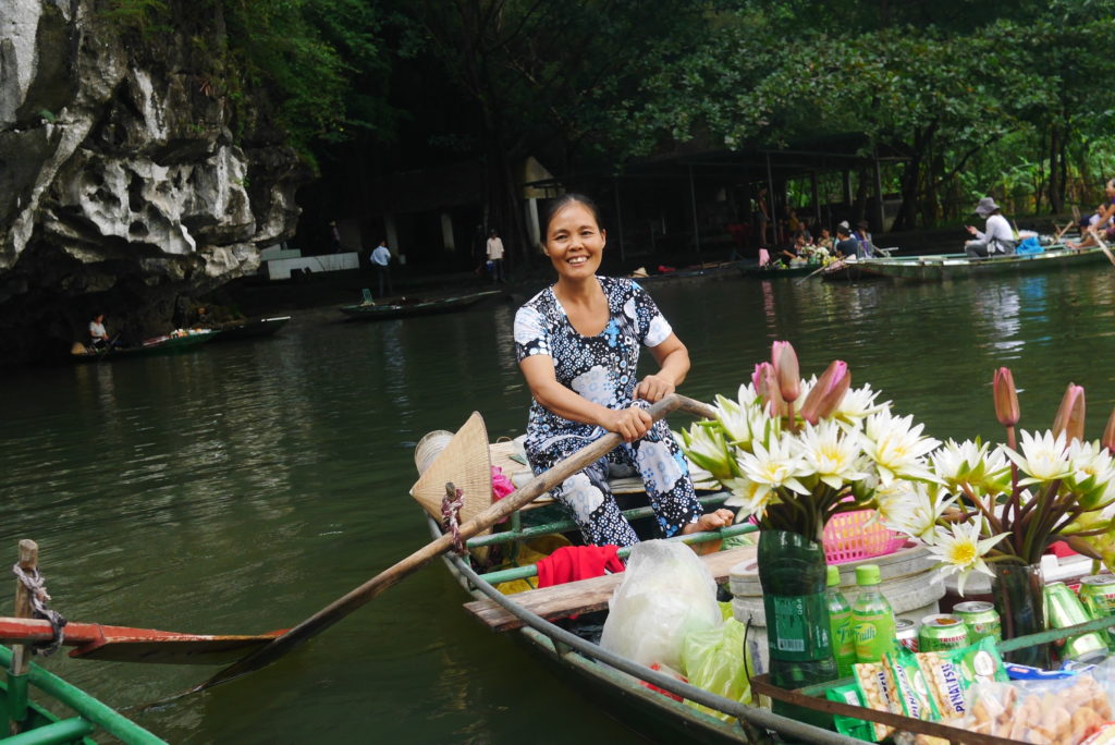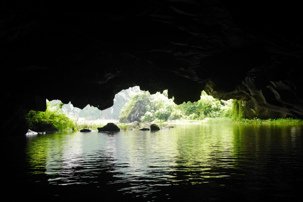 Ninh Binh itself is a pretty small town and not much to see inside the city. The reason people come here is to see the countryside. The landscape is somewhat reminiscent of that of Halong bay with the same kind of karst cliffs but instead of islands in the sea, they stick up out of fields, rice paddies and rivers. The best (or at least most famous) place for seeing this landscape is Tam Coc, some seven or eight kilometers from the city centre. You rent a boat for two or maybe three people and a local person rows (using her feet) you along a small, shallow river that meanders between, and sometimes through, the karsts. It’s sort of pricy but well worth it. Since we had just been to Halong bay before coming here you might think this would be too much of the same, but the surrounding landscape is so different it felt like a completely different experience.