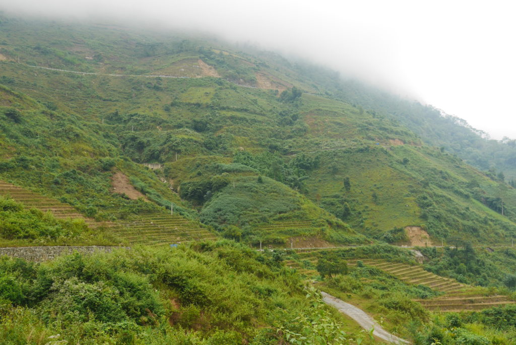 The road kept meandering along, criss crossing the highway several time, so not only did we have to go much slower than expected, but the distance was longer too. Around seven in the evening we realized we still had several hours of driving in these kind of conditions and it would be dangerous to continue. Since we were coming up on a small town we decided to give up and find a hotel. According to the map the nearest hotel was about 20 kilometers away so we headed there. Just a kilometer or so down the road we came upon a hotel that was not on the map. What a relief that we didn’t have to keep going. So, we called our hotel in Sapa, told them we wouldn’t arrive until the next day then spent the night there in a small town in the middle of nowhere.