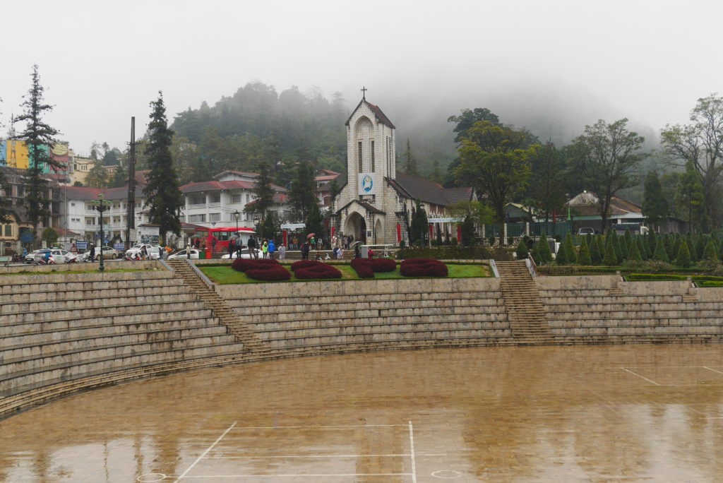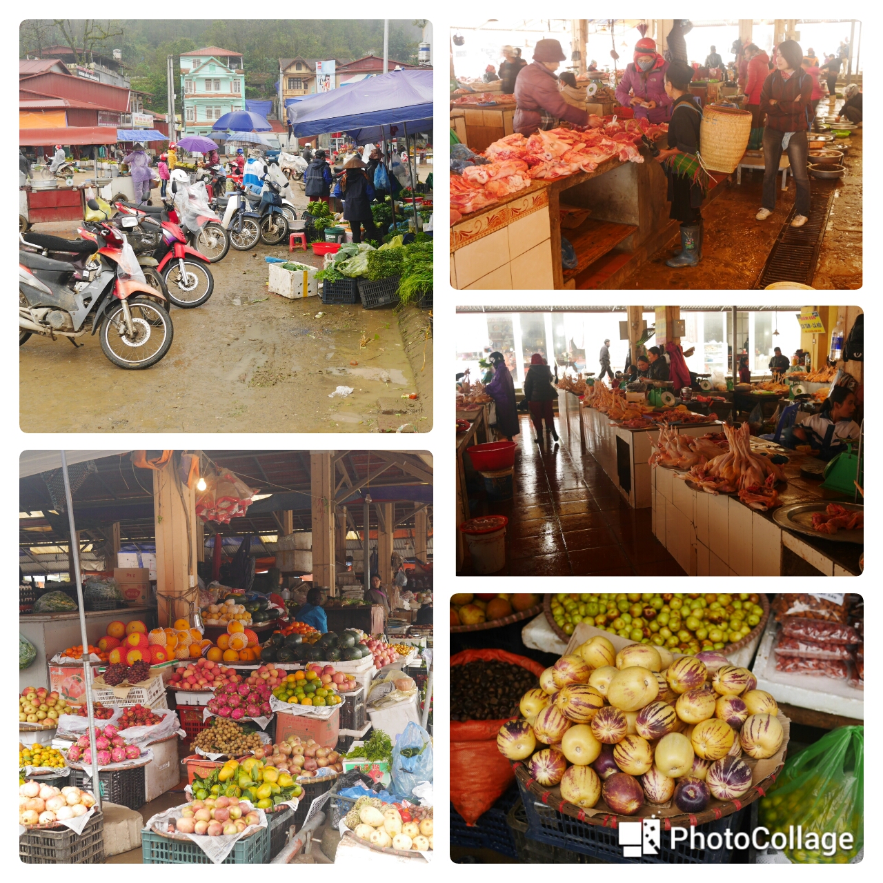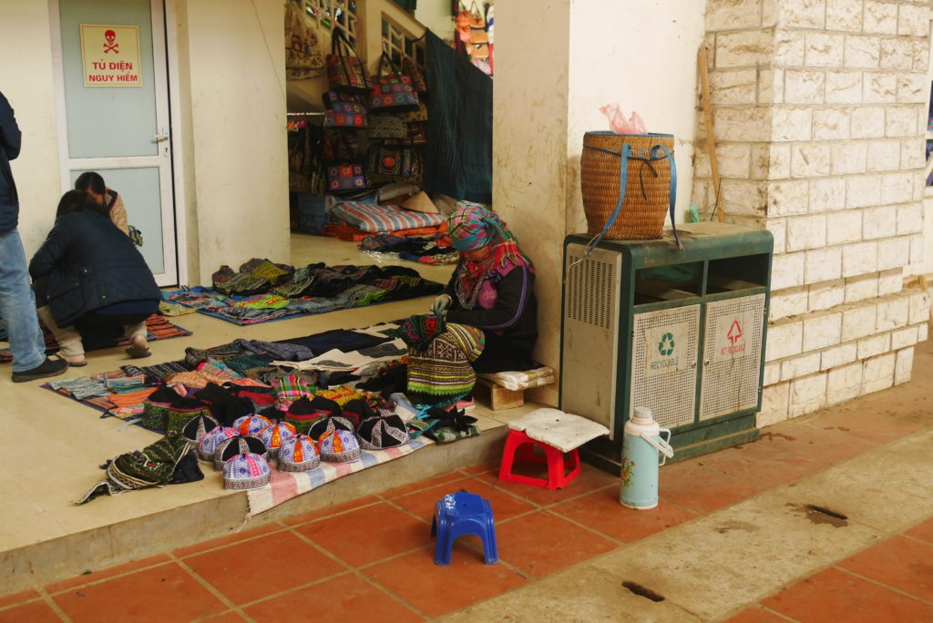 We had hoped to do a bit of trekking today but when we woke up it was really foggy. Thinking it might clear up later in the day we headed up to Sapa town and the market which was supposed to be good. The owner of our homestay told us the market used to be in a different place but it’s recently been moved to a big concrete building. Apparently the rent is too high because the place was rather empty. The vendors were basically selling the same kind of things, some had dried fruits and herbs, some had outdoors kind of stuff like flashlights and folding shovels while others sold clothes. In a corner there were some tribal women selling batik fabric and embroidered bags and hats.
