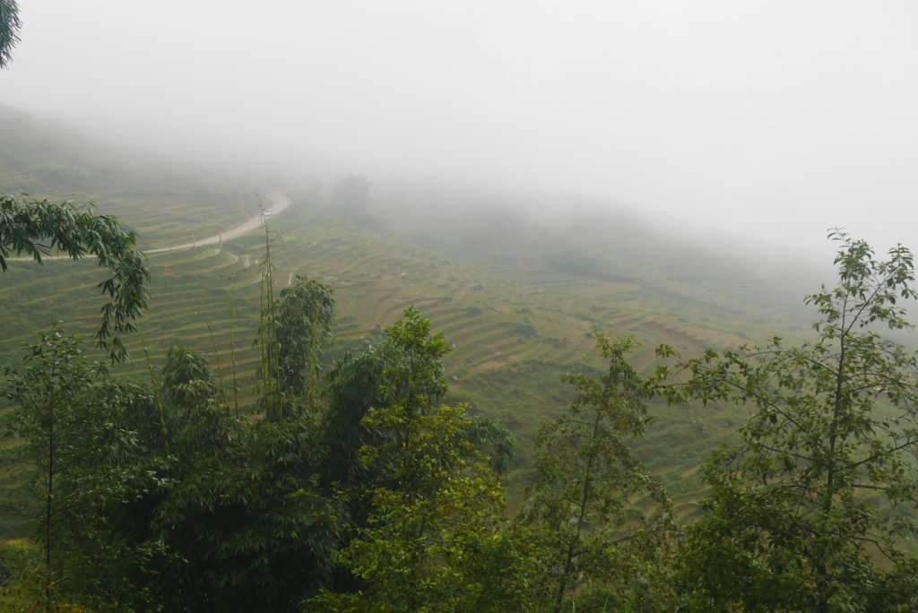 When we had seen the market it was almost noon and the weather still hadn’t cleared up so we had some lunch then headed back down to our homestay. When we got to lower a altitude we came down under the fog so it was actually possible to see something so we parked the bike and went for a walk in the village.