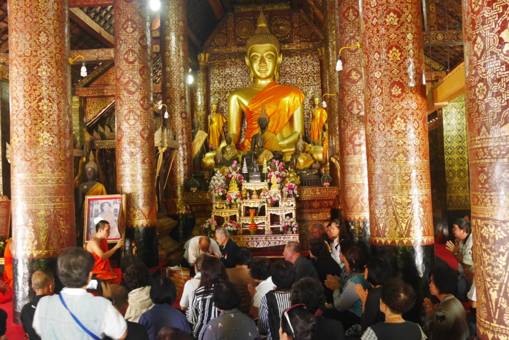 At the end of the peninsula where the Nam Khan river flows into the Mekong, lies the most famous temple in the city, Wat Xieng Thong. It is big with several smaller temples and shrines within the temple complex. I happened to be there when a sermon was going on so I could hear the chanting and see the people praying.