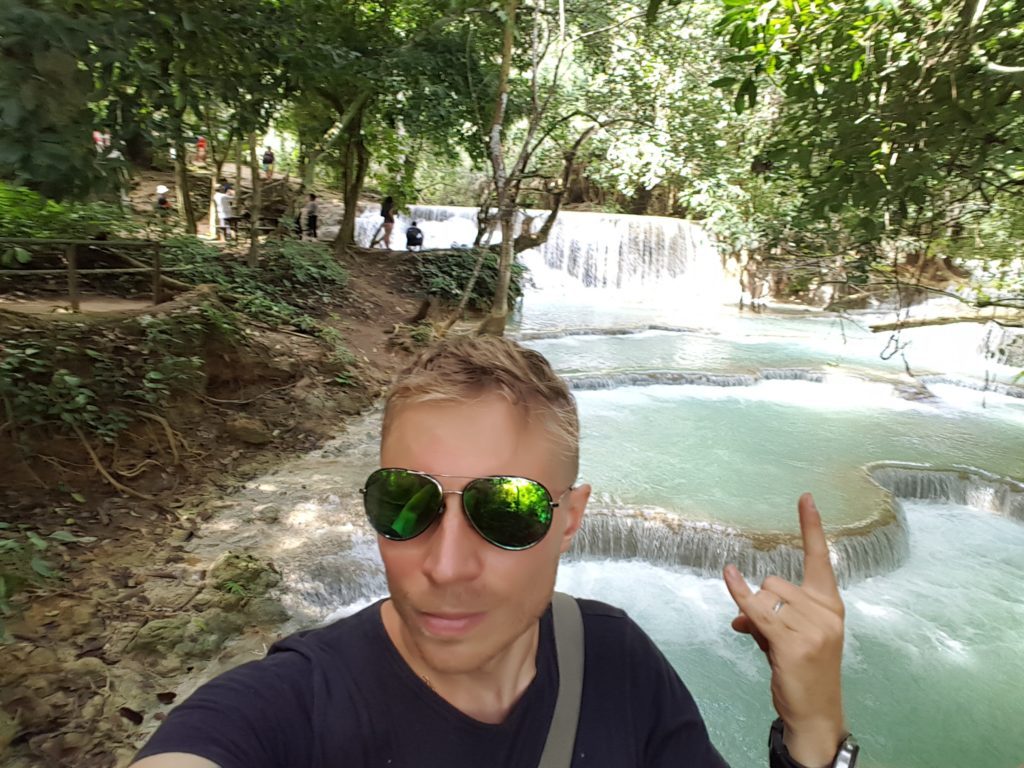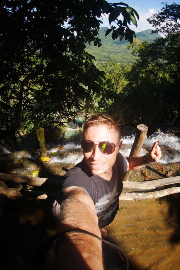 When I awoke this morning my eye was much better, well enough, I decided, to go sightseeing. A short distance from Luang Prabang lies the Kuang Si waterfall. Right next to it is a center for rescued bears. I’m not an animal lover so I didn’t find it that interesting, but if you are, you will like it.