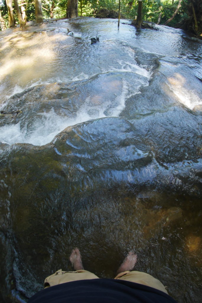 After the main fall the path continues but the other tourists stopped. I continued however and it was a pretty steep and difficult climb but I made it up to the top of the falls. There I could walk around in the ankle deep water just at the edge and look down.
