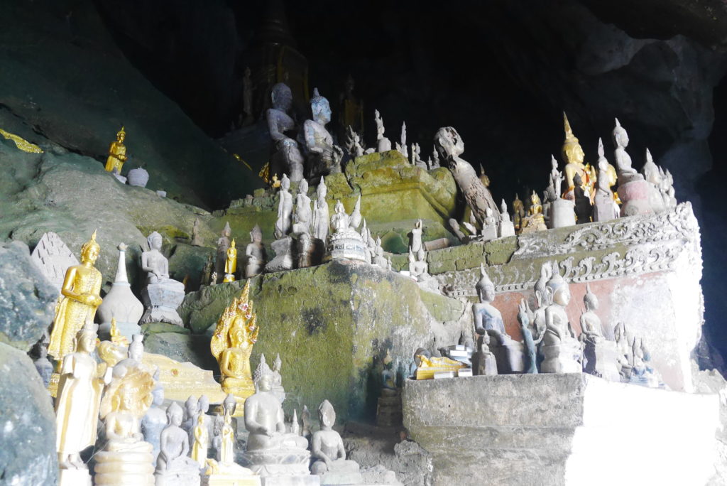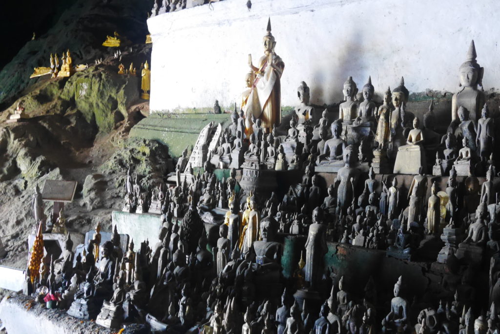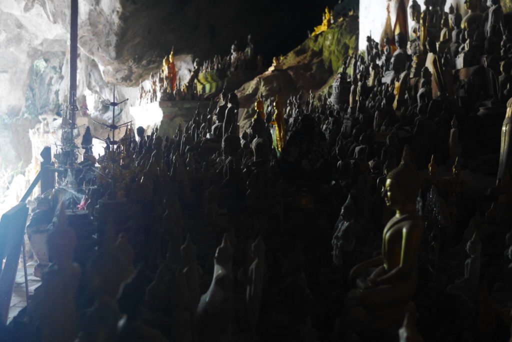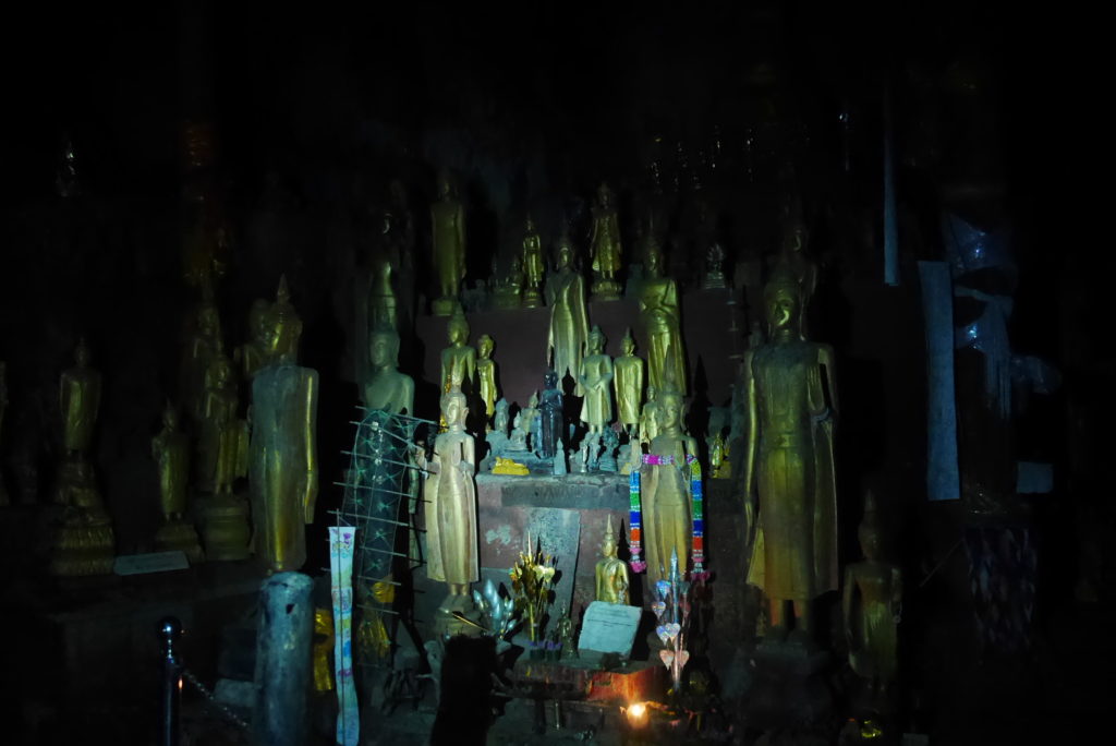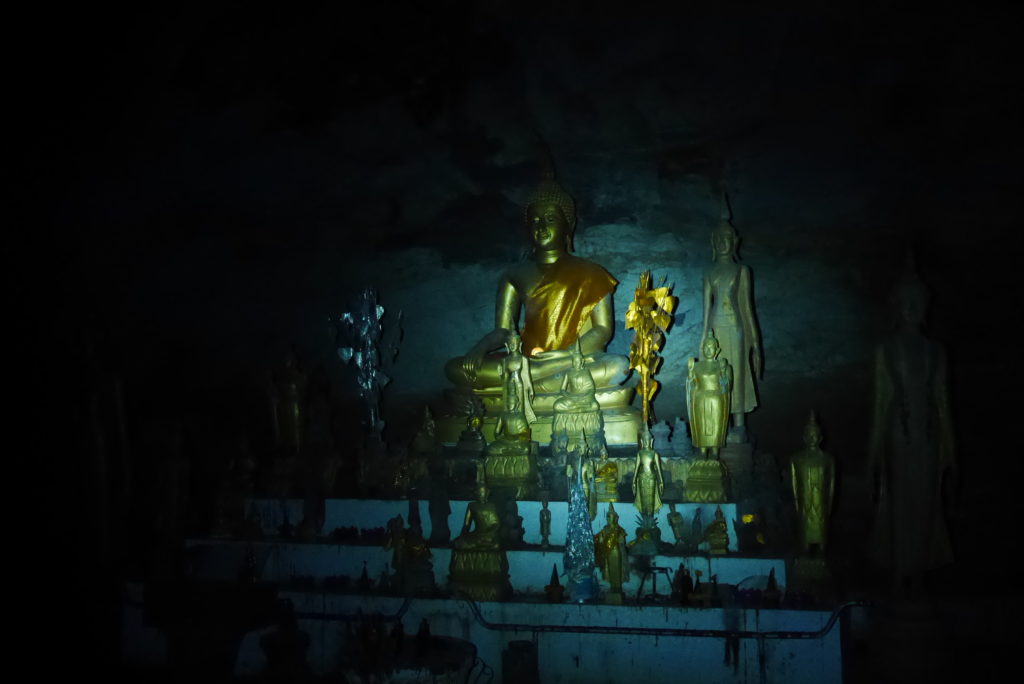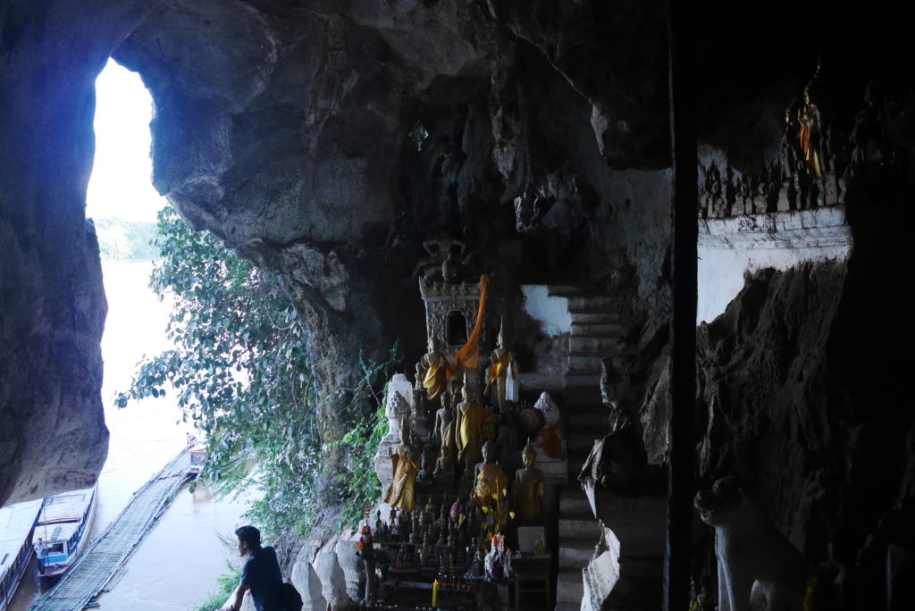 On the other side of the city are some caves called Pak Ou. I thought they would be pretty well known just like the waterfalls but there were far fewer people there than expected. The access road was in really bad shape and I was actually about to turn back once or twice but I’m glad I persevered . The caves are on the opposite side of the river from the closest village so you have to take a boat to get there. What’s special about these caves compare with others in the region is that the people from nearby villages have filled them with Buddha figurines of all different shapes and sizes. It kind of reminds me of the Hill of Crosses in Lithuania. The lower cave is quite shallow and has enough natural light, the upper cave is deeper so you need a flashlight inside. Even though I’ve seen plenty of caves in this trip, I think these are really worth seeing.