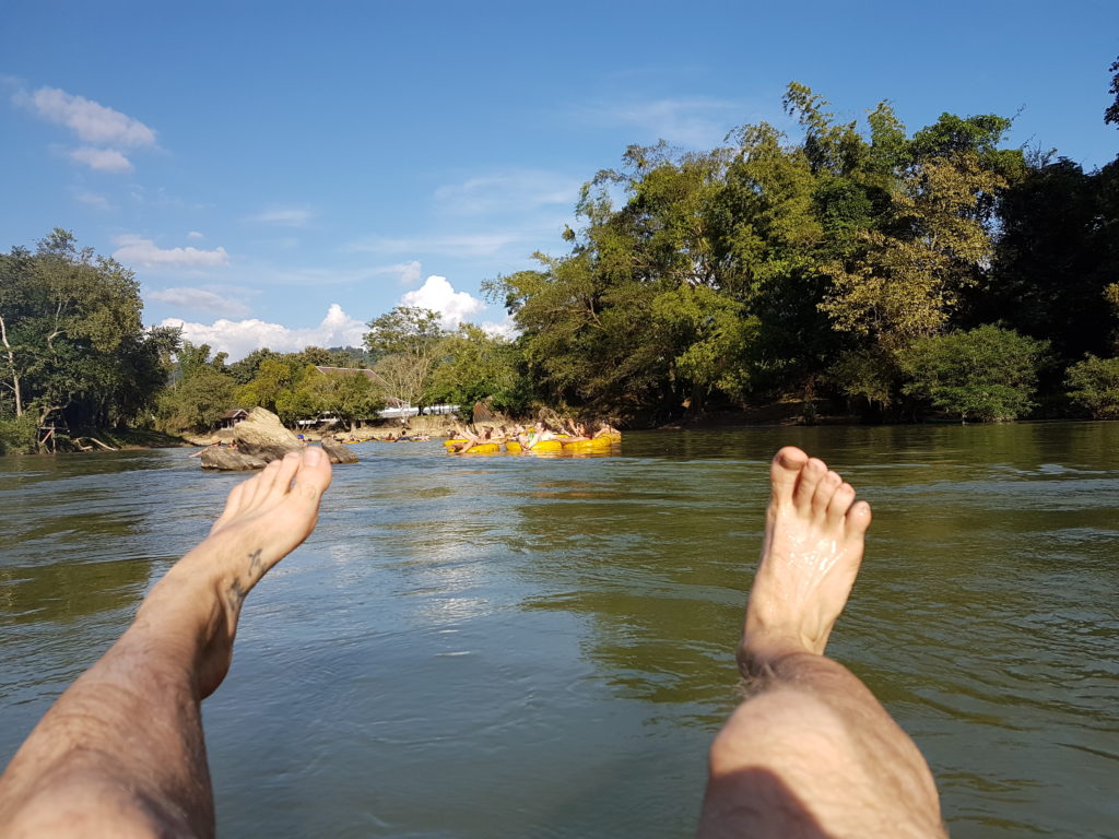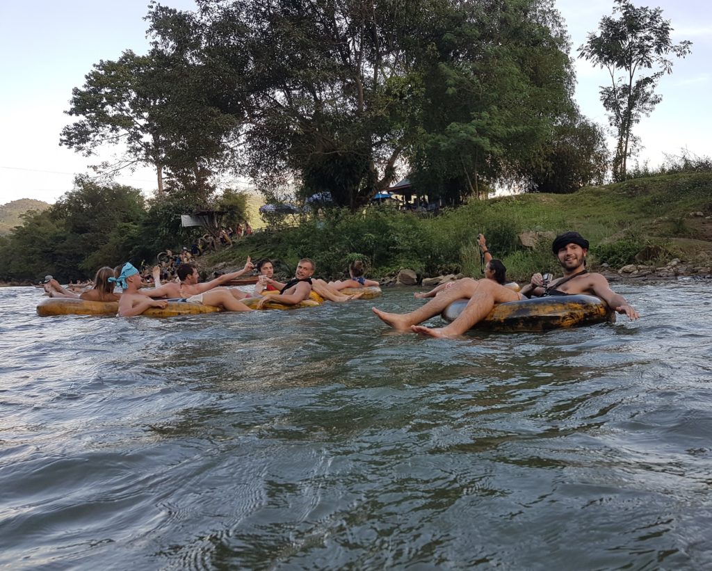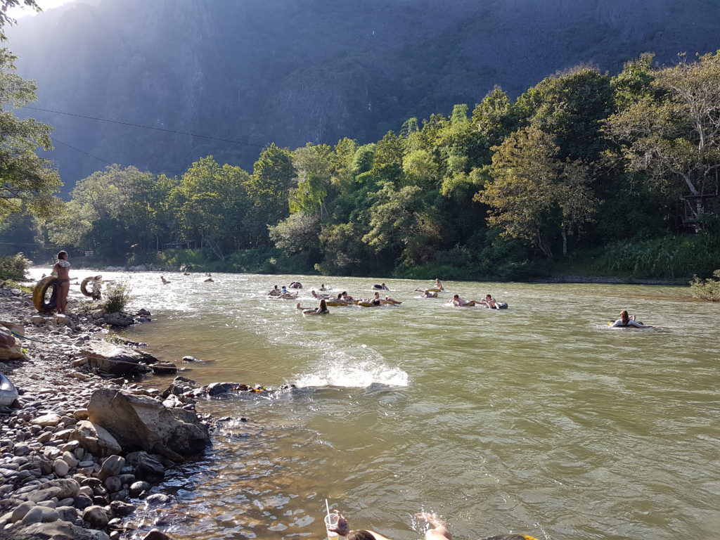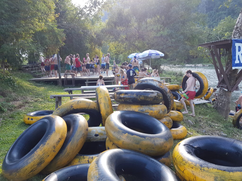 Well, I couldn’t come to Vang Vieng with the intention of seeing how it’s changed after the big government raid without actually doing something tubing. So, my second day in the city I slept until late, had a pizza for brunch (because it’s good filler before going drinking) then changed into my swim trunks and set off.