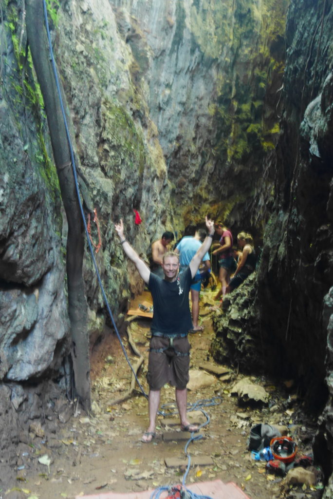When the riverside bars closed down in 2012 the action sports companies moved in. Nowadays Vang Vieng is crawling with tour operators selling day tours of kayaking, ziplineing, terrain buggy driving and parasailing. One of my favorite sports is rock climbing so for me that was the natural choice. I booked a one day tour and as it turned out it was just me and the guide which was good for me. Since I’ve climbed before he gave me a few minutes reminder of how to belay then off we went. I belayed while he climbed lead and set the rope then he belayed while I climbed. The routs we took got progressively harder and on the second to last one there was a bit of an overhang so I had to make two attempts to make it. On the last one I almost got all the way up but I had sapped my strength and I just couldn’t hold on. It was great fun and great exercise; I really should take up climbing again when I’m back in Taiwan.
