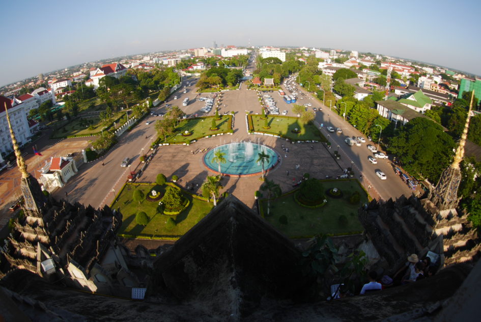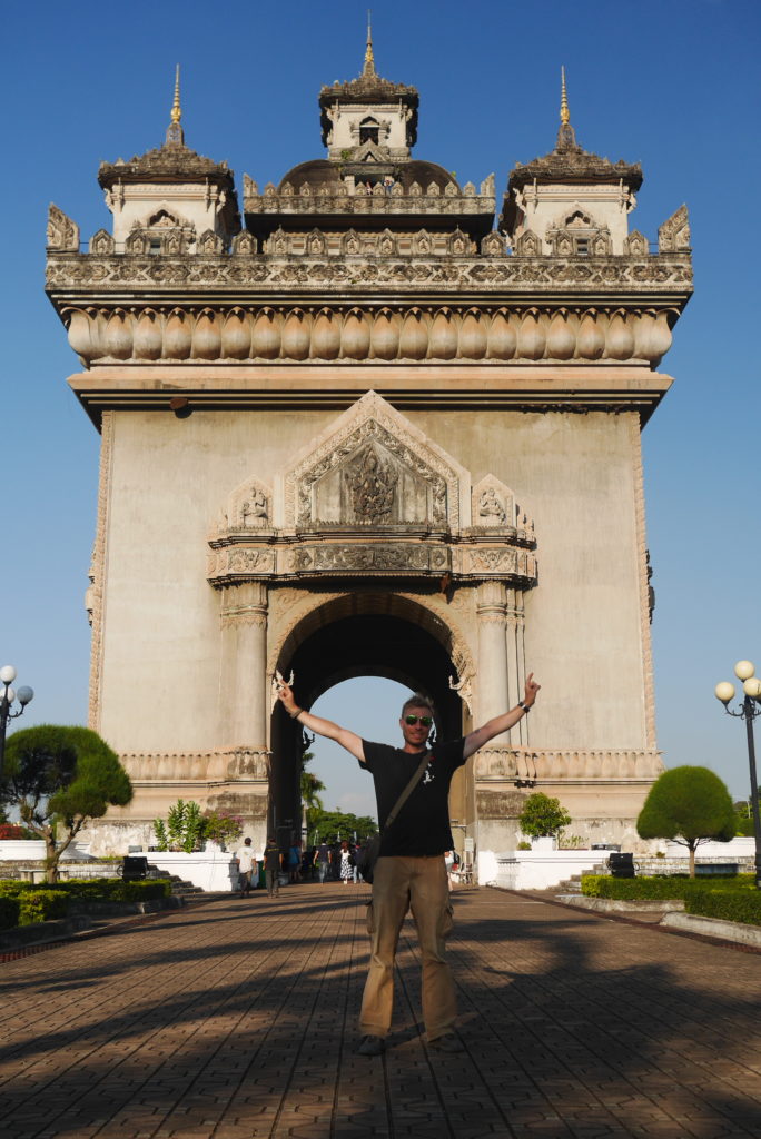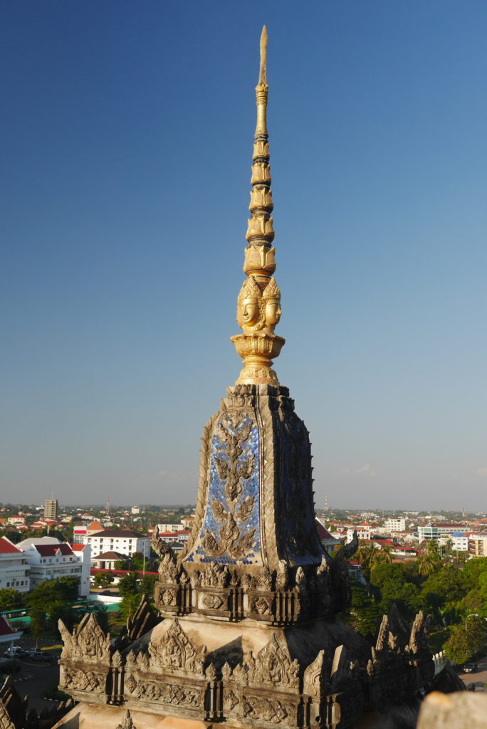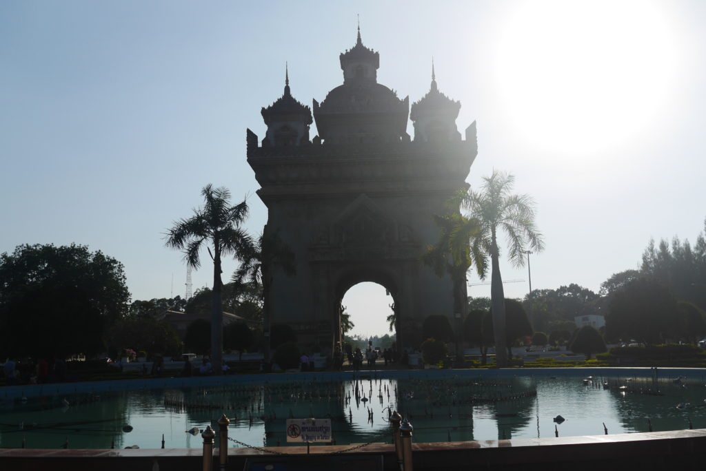 Patuxai is a kind of arc de triomphe built by the Laotian government in 1957 to celebrate independence from France. Interesting note, the concrete used was originally a donation meant for a new airport.
