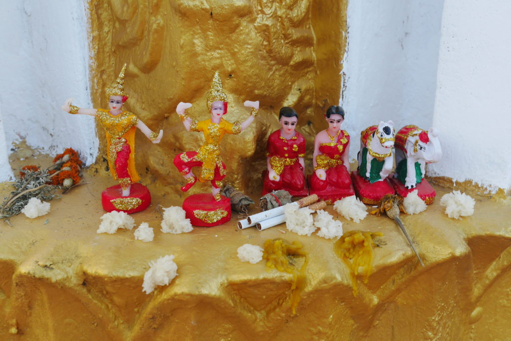 These miniature figures on the base of the statue are pretty cool. I like the offering of two cigarettes too.