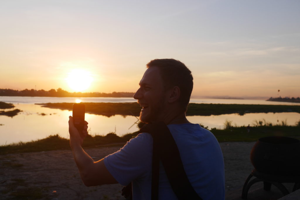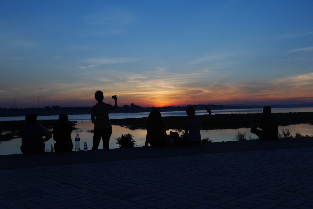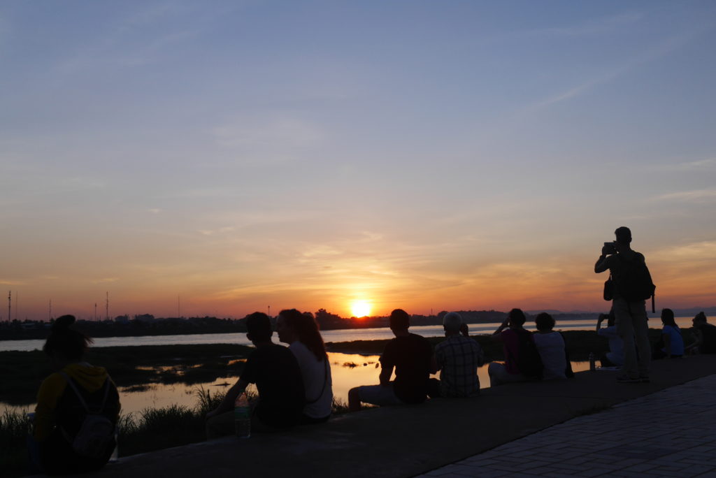 We also thought about going to the army museum but that was closed as well. With nothing better to do we headed down to the Mekong river to watch the sunset. Sitting there, looking out over Thailand on the other side of the river, the sun sinking down below the horizon; what a way to end a day.