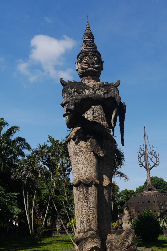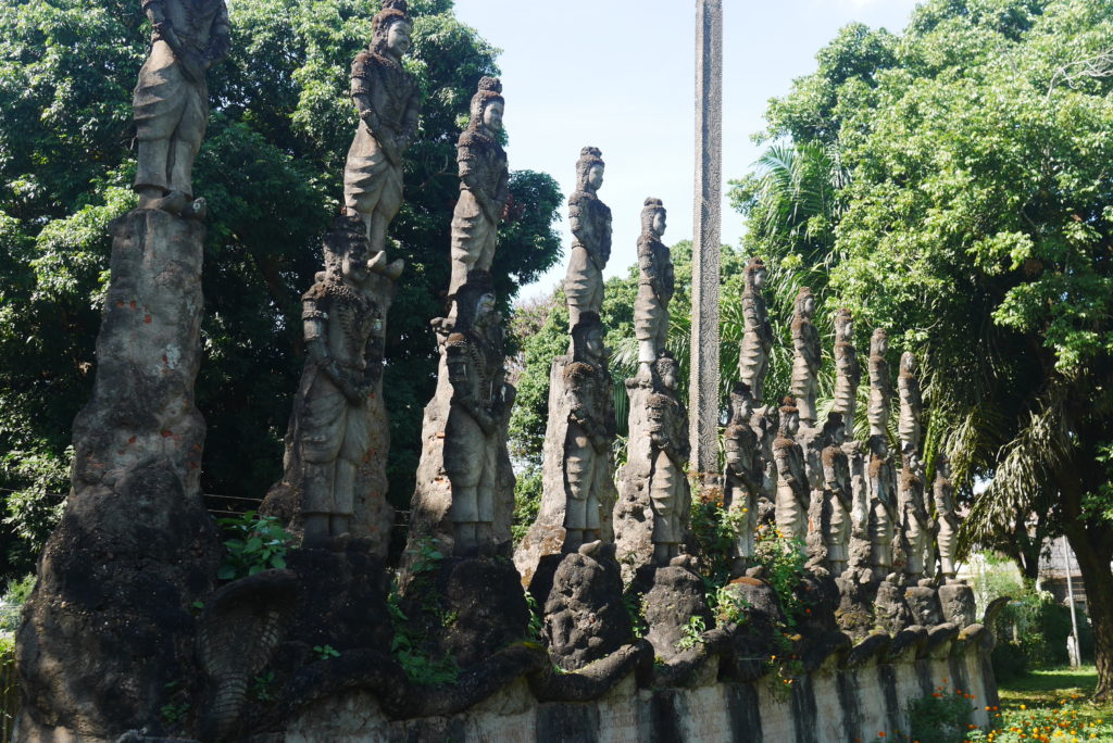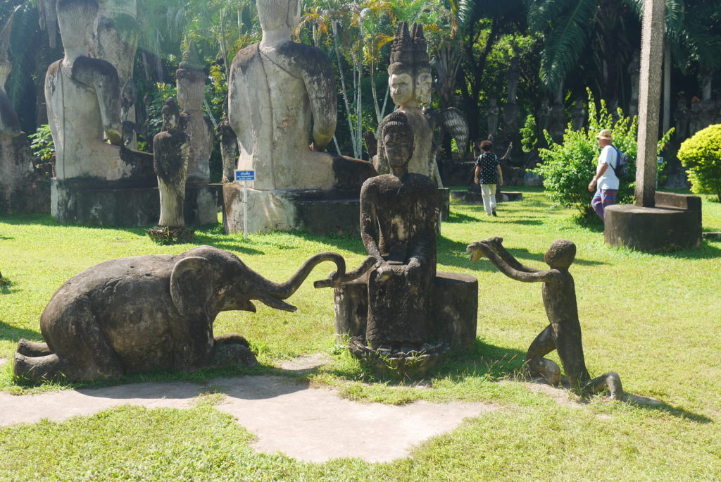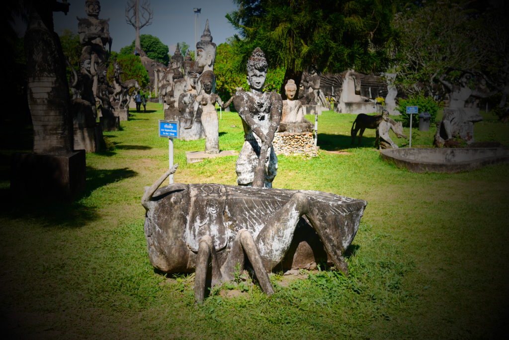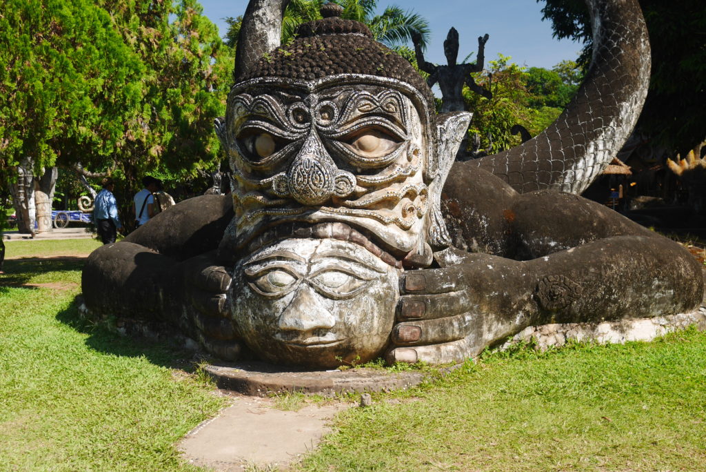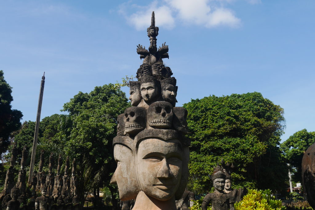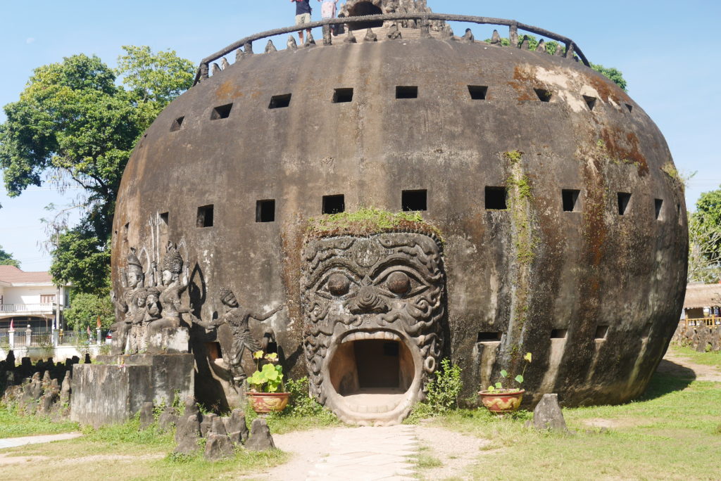 Just a short distance outside Vientiane is a park called Xieng Khuan Buddha park. It is meadow full of Buddhist and Hindu statues. Though many of them look ancient they were made using concrete starting in 1958 by a priest-shaman called Luang Pu Bunleua Sulilat. The statues depict all manner of gods and creatures out of Buddhist and Hindu mythology; it’s a mix between weird and scary. The most prominent statue is a large pumpkin-like thing, the inside of which depicts Buddhist hell.