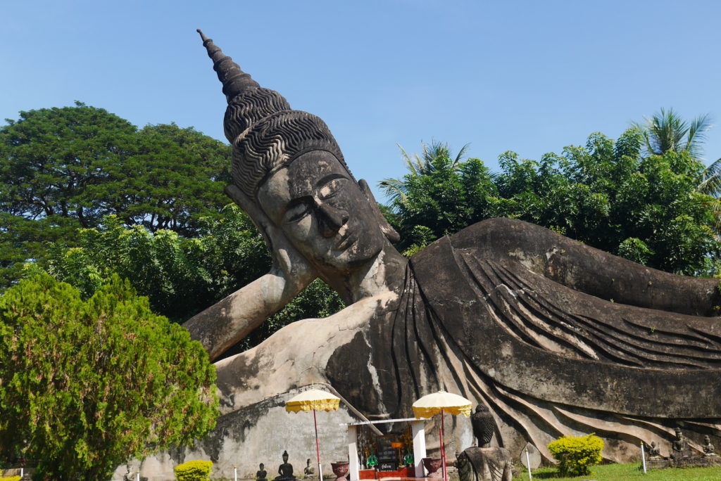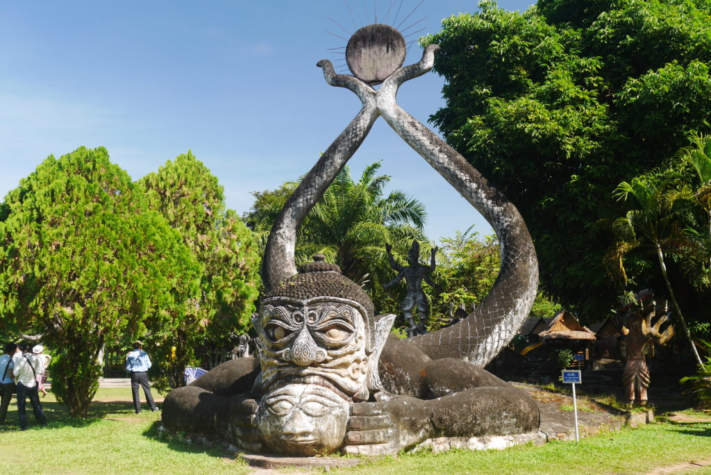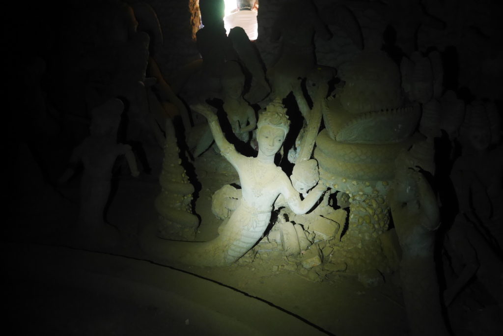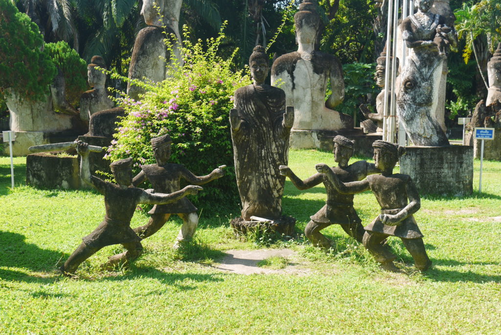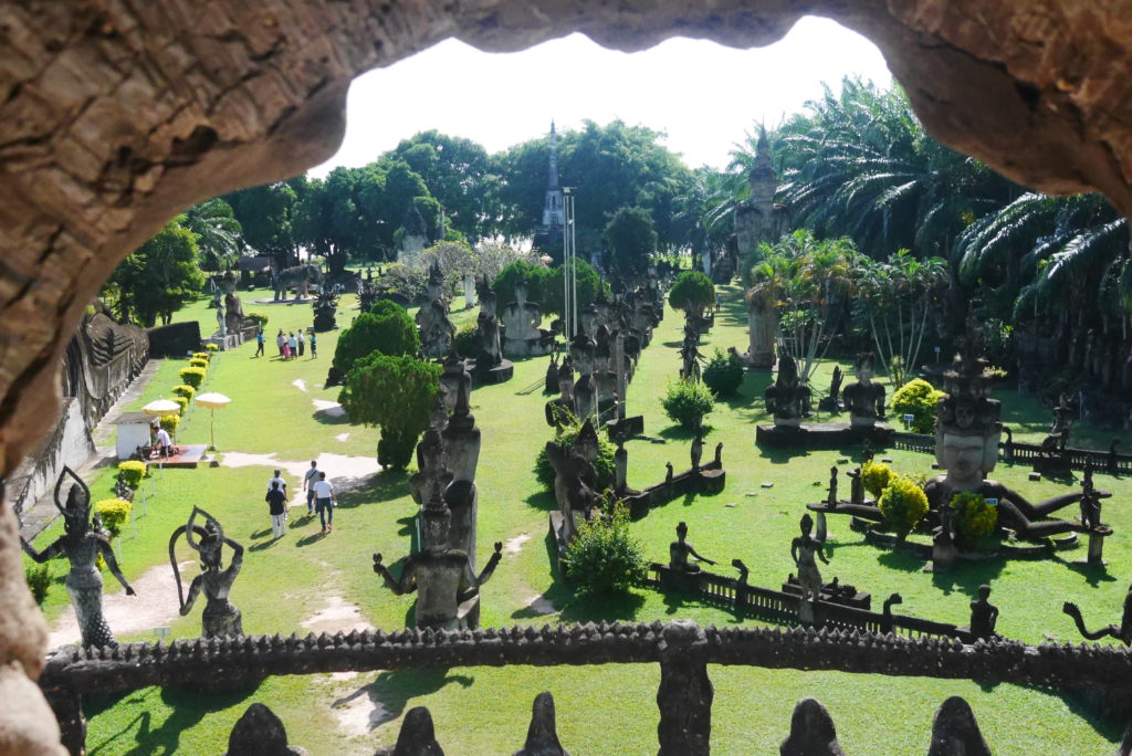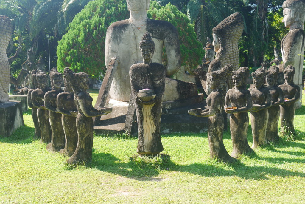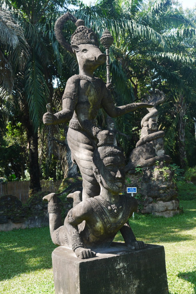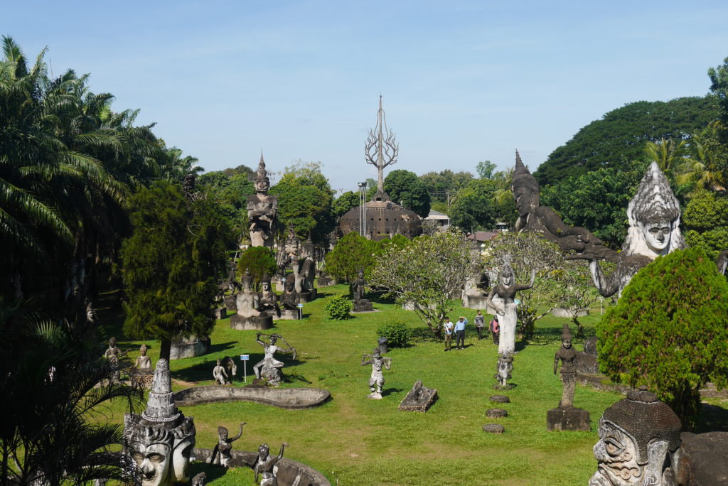 Just a short distance outside Vientiane is a park called Xieng Khuan Buddha park. It is meadow full of Buddhist and Hindu statues. Though many of them look ancient they were made using concrete starting in 1958 by a priest-shaman called Luang Pu Bunleua Sulilat. The statues depict all manner of gods and creatures out of Buddhist and Hindu mythology; it’s a mix between weird and scary. The most prominent statue is a large pumpkin-like thing, the inside of which depicts Buddhist hell.