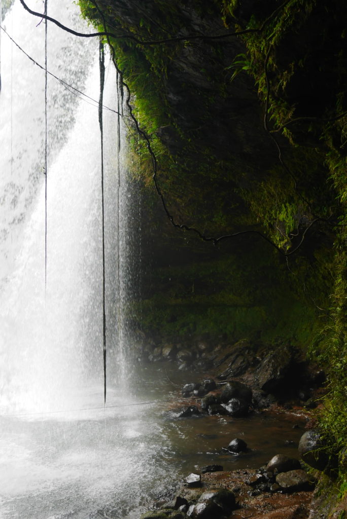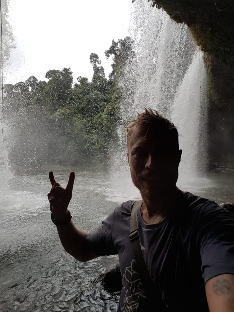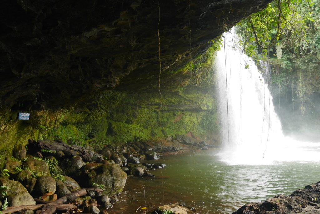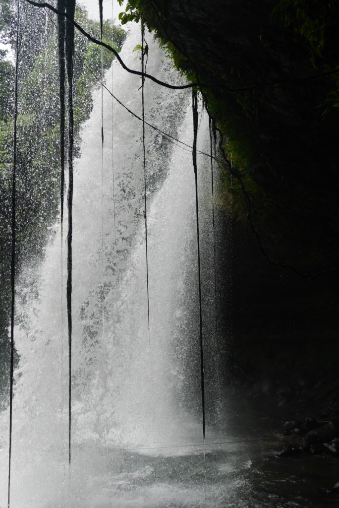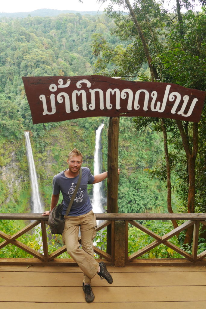 The third fall of the day, Tad Champee, is my favorite. It’s smaller than the previous two, only a few meters high, but pretty wide. What makes it special is that the top of it is on an overhang so you get something like a cave behind it. Walking behind a waterfall, looking out at the river valley, with the deafening roar of the water in your ears, is a really cool experience.