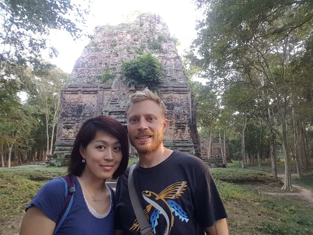 Sambor Prei Kuk is a collection of temple ruins that predate Angkor Wat by a few centuries. The temples are spread out in the forest some ten kilometers from the main road north. At first we only saw a few not very impressive ones which felt a bit disappointing after coming all the way here. However, as we kept walking through the forest we saw more and more temples, hidden from view by the foliage. Though there are sandy paths running between them and signs of modern civilization here and there, there is a decent Indiana Jones feel about the place. That we were there in late afternoon with the golden light of the low hanging sun filtering through the trees helped to give the place a kind of magical atmosphere. As far as I can figure out there is no other reason to come to Kampong Thom, but Sambor Prei Kuk is definitely worth a visit. We will go back to Phnom Penh, but you could go here as a stopover on the way to Siam Reap.