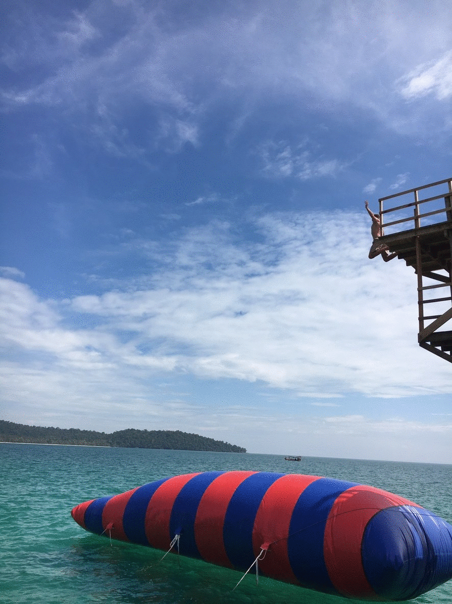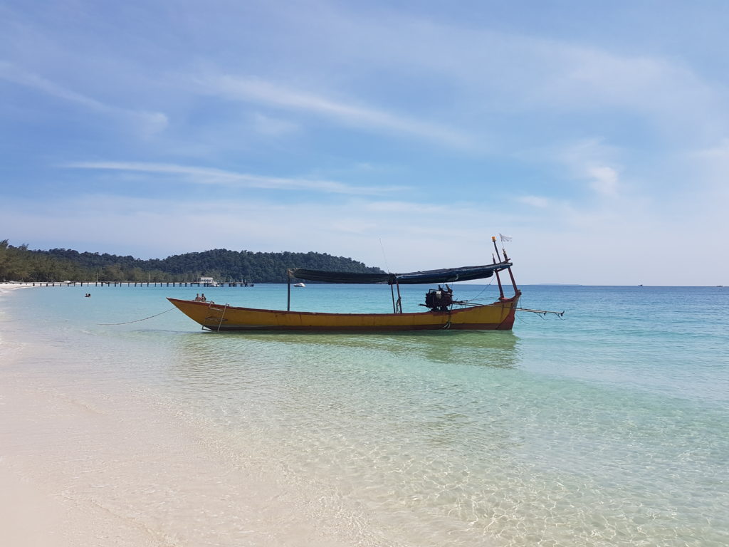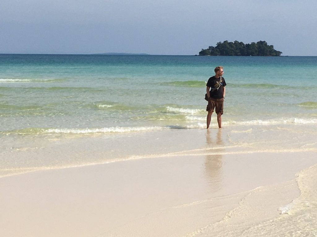 I haven’t seen the sea since leaving Cat ba island so when I read about white sand beaches in southern Cambodia I knew I had to go there. Thanks to a recommendation from some other travelers we set our sights on Koh Rong island. It took a full day to get there, first a bus to Sihanoukville then a speed boat ferry from there. The island is not very developed, save for the main boat pier, most of the hotels and restaurants are right on the beach. There is a kind of main area where the bars and restaurants are closer together and the backpackers congregate for beach, beer and barbecue. Our bungalow was some way down the beach, where we could get away a bit from the night life.