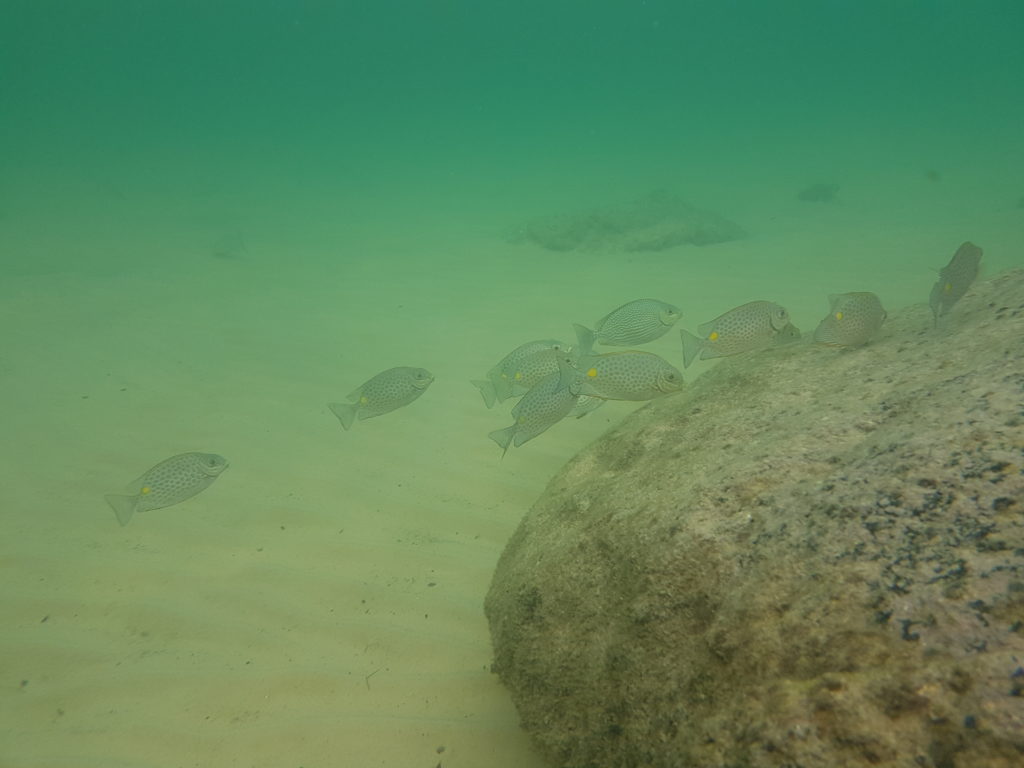 I went snorkeling and saw lots of fishes, sea cucumbers and big sea urchins