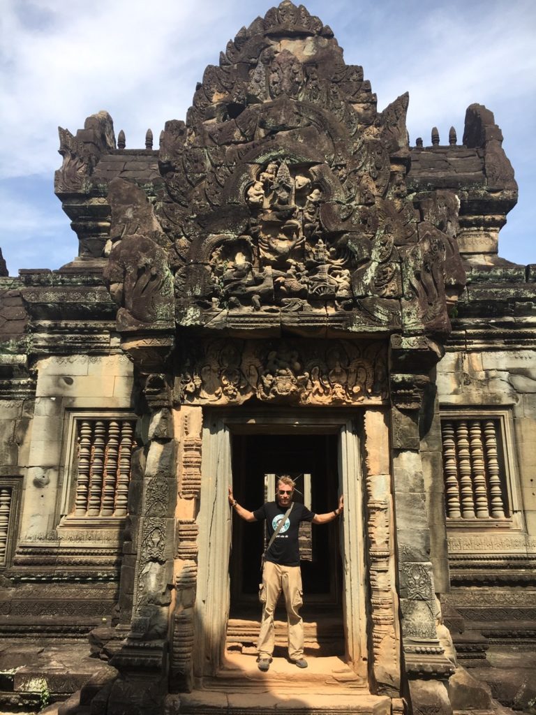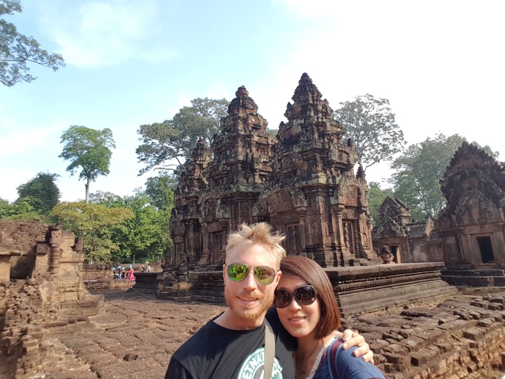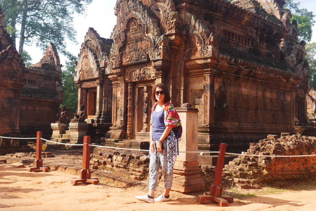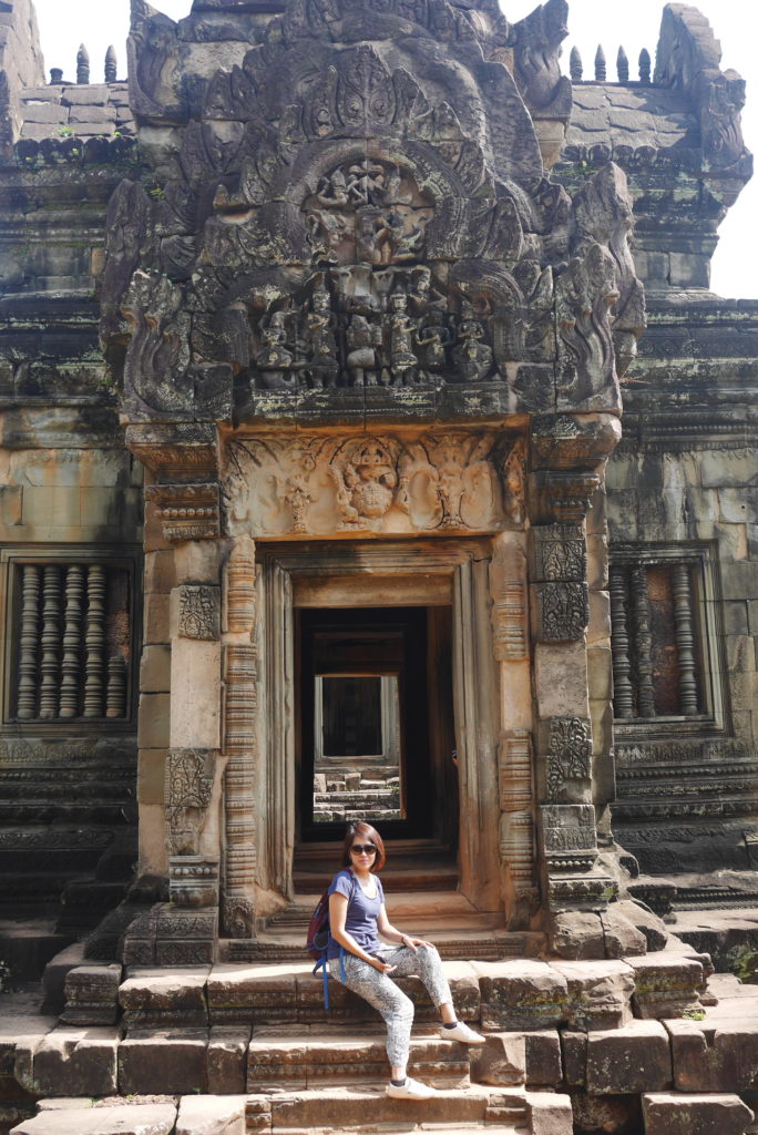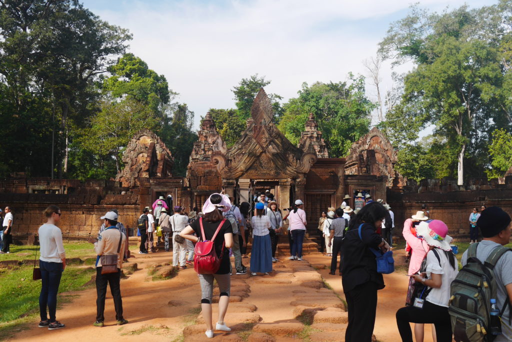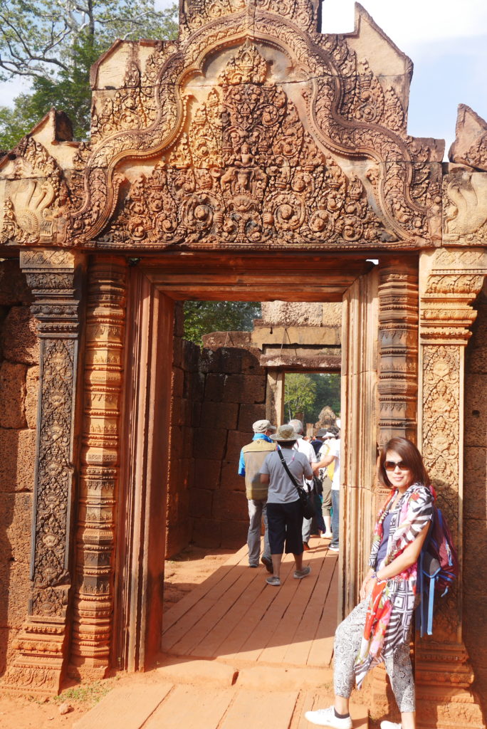 Banteay Srei is rather far from the other temples, about 30 kilometers from the city but it was supposed to be very beautiful and since we had the time we decided to go there. Perhaps Tuk Tuk wasn’t the best option for that kind of distance but I think it’s much more fun than some kind of mini bus. The temple is indeed very beautiful, it is built in red sand stone and is covered in some very well preserved, extremely intricate carvings. We were a bit unlucky though because we arrived at the same time as three bus loads of Chinese tourists so the place was crowded.