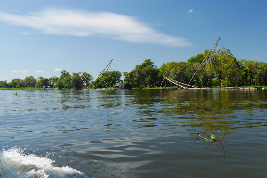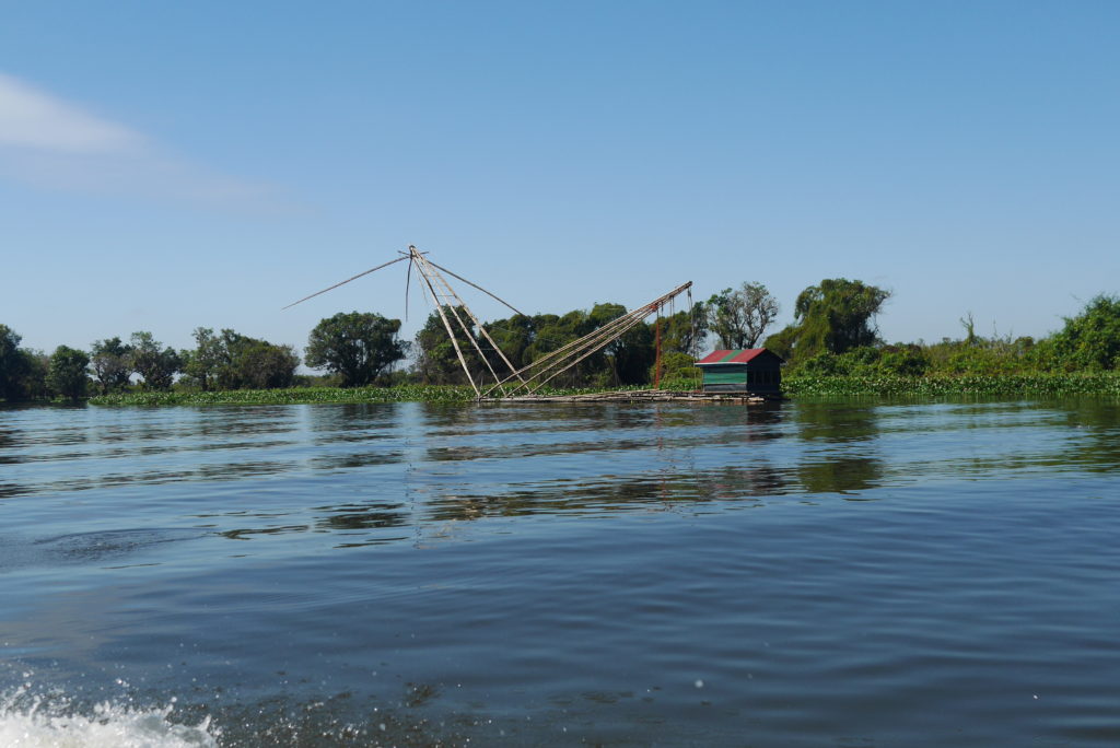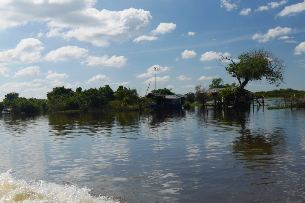 My tagline is “the journey is part of the destination” and today this was certainly the case. I wanted to go to Battambang and there is a bus but I heard that the boat, though slower and more expensive, is a worthwhile experience so I decided to try. At seven in the morning a minibus picked me up and brought me out of Siem Reap down to Chong Khneas on the shore of the Tonle Sap. There I got on the boat which was quite a simple thing made from wood, with a thumping diesel engine in the back and controls that looked like they’ve been cannibalized from an old car. Once the boat became full, with half the people sitting on the roof, we set off through a landscape quite similar to that of 4000 islands, with little green islets dotting the river.