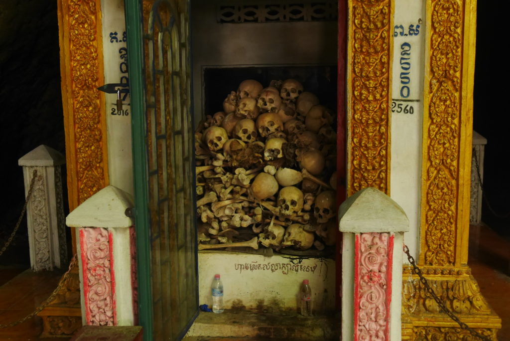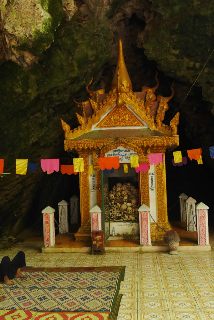 Most of my companions needed to go back to the hostel after that but the Singaporean guy (his name is Jevin by the way) and I set off to mount Pnom Sampow outside the city. At the top of the mountain there is a temple and along the way up there are a number of caves. The most famous cave is the killing cave, the Khmer rouge would bludgeon their vitims to death at the top then let the corpses fall into the cave. Nowadays theres a small memorial stupa with a bunch of skulls and bones inside. Except for the killing cave, there wasn’t that much to see for a templed out traveler like me but if you’re in Battambang you might as well go to kill some time.