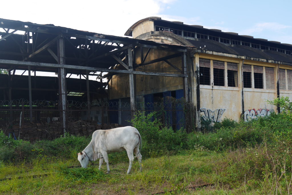The bamboo train runs on old tracks left over from the French colonial era. In the city center the abandoned station and a couple of repair sheds still stand so I naturally had to do a bit of urban exploration.