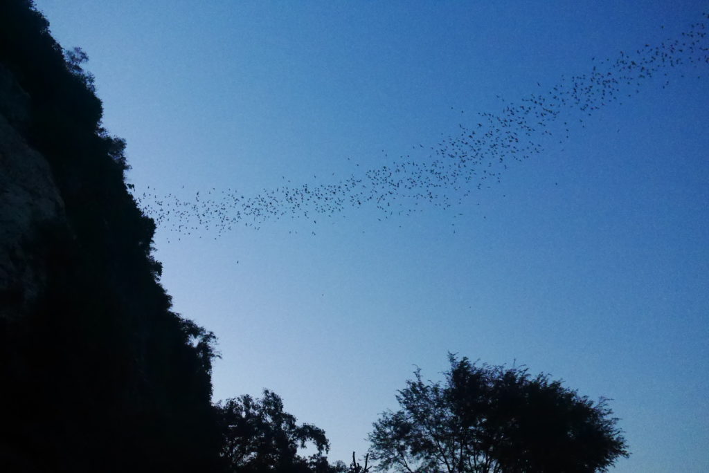 In the late afternoon, just before sunset, I headed back out to Pnom Sampow, to something called the bat cave. Just as it was getting dark, bats started streaming out for their night time hunt. There were thousands of them, maybe even millions, it almost looked like smoke billowing in the wind. They kept coming out of the cave in a constant stream for almost half an hour, it’s really fascinating.