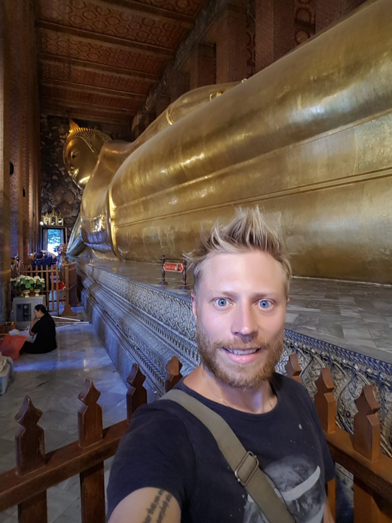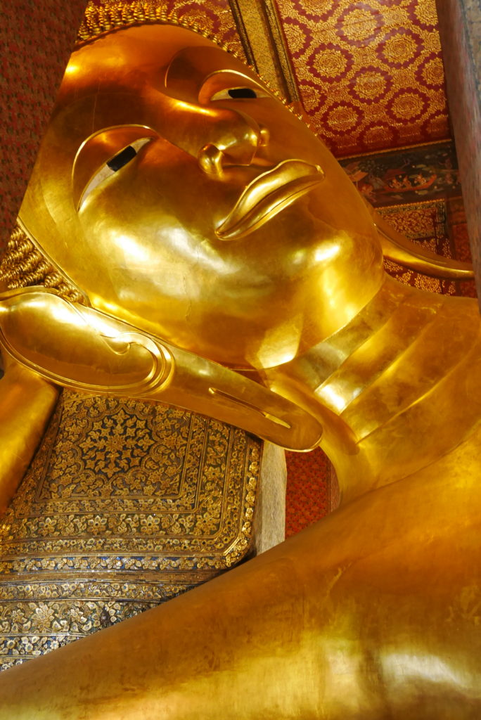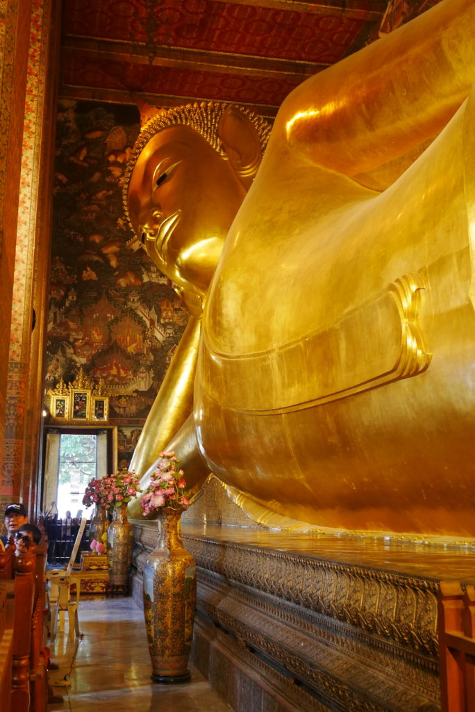 The next stop was Wat Pho, just south of the palace. There were less tourists there but the splendor was almost equal, with lots of decorated stupas. The most impressive part though, is the gigantic, golden reclining Buddha.
