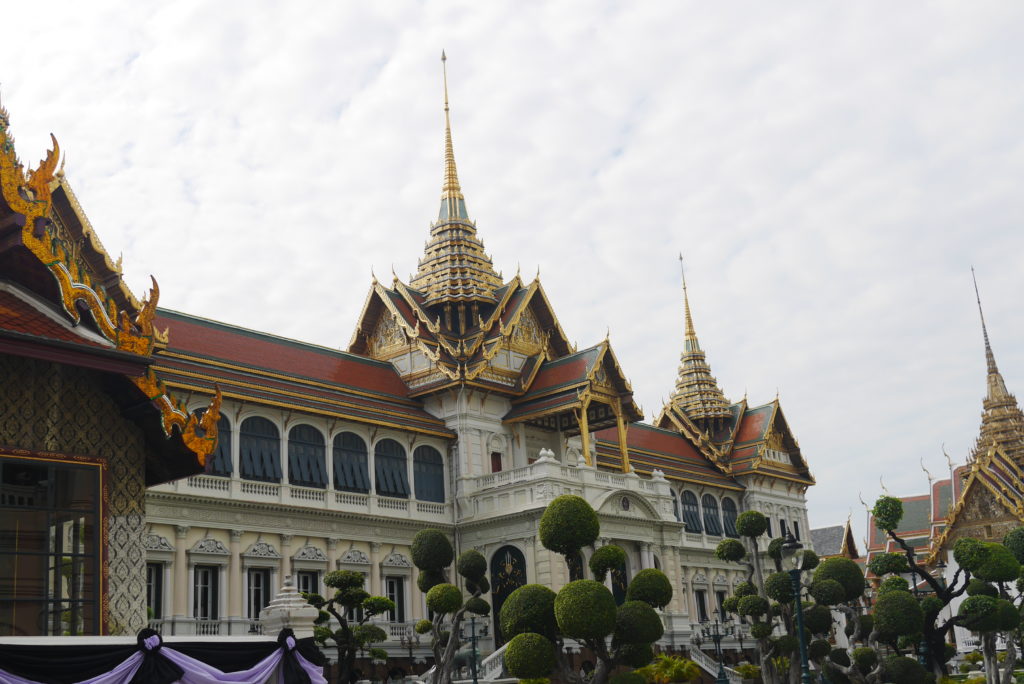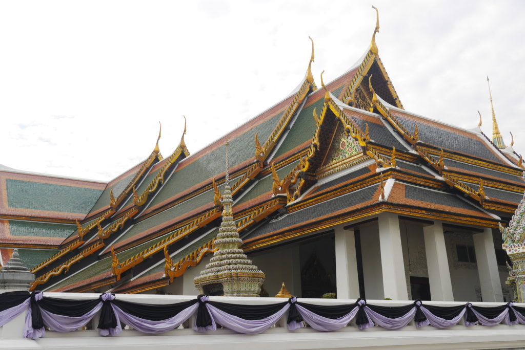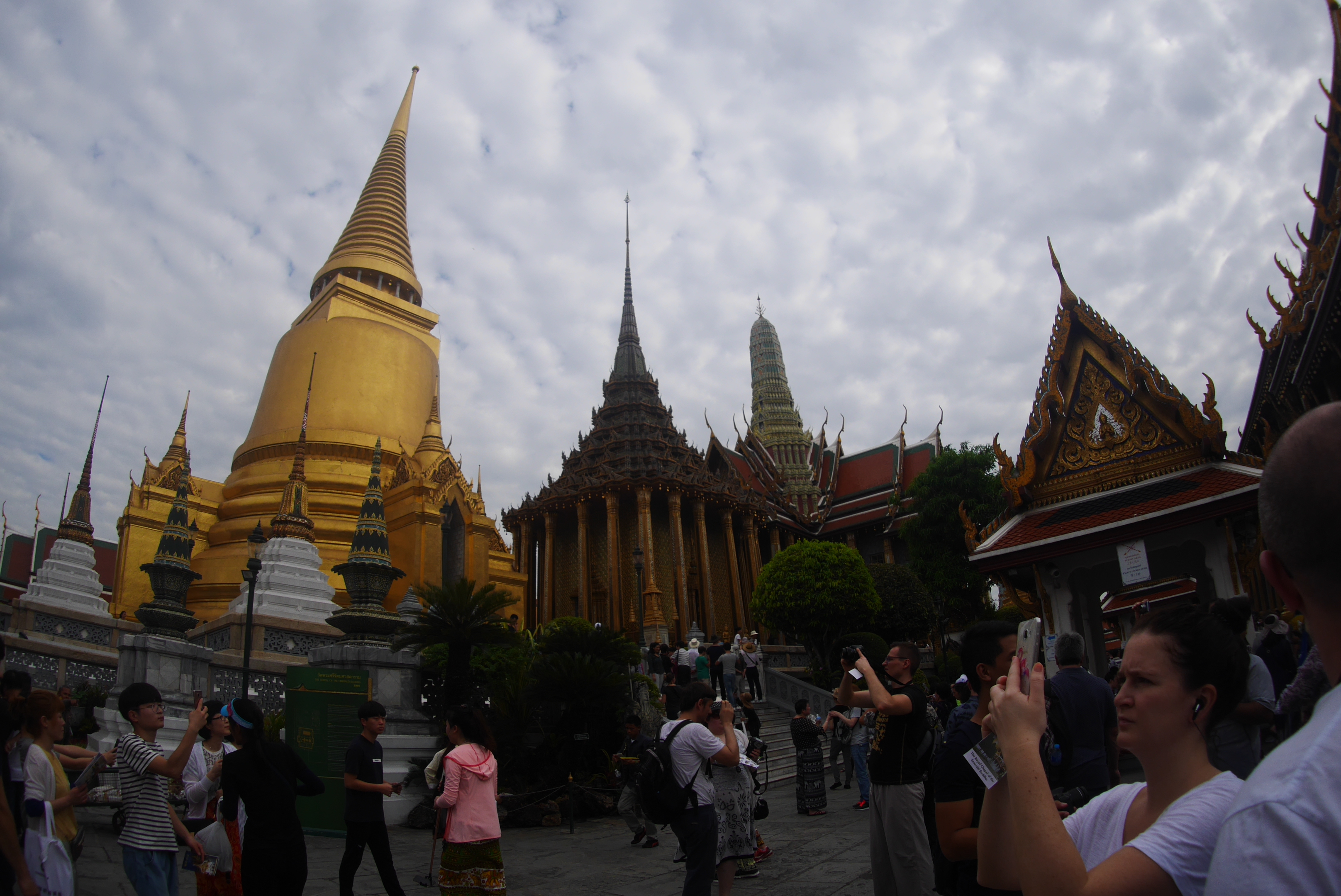 I’ve had an active day in Bangkok, doing the rounds of the main tourist attractions. I started with the Grand Palace and Wat Pra Kaeow, both of which are full of both splendor and tourists. It’s almost too much gold and decorations to take it all in and as you get jostled around by the other visitors it’s a bit stressful. I also noted that except for the billboards honoring the king, there were hundreds of black clad Thai people around the palace, waiting to pay their respects.
