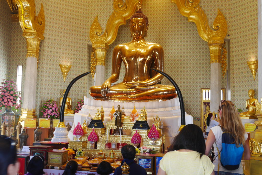 Where the market ends there is another temple called Wat Traimit, famous for its gigantic solid gold Buddha that was “discovered” in the 1940’s when some movers accidentally damaged the gipsom used to hide it during the war.