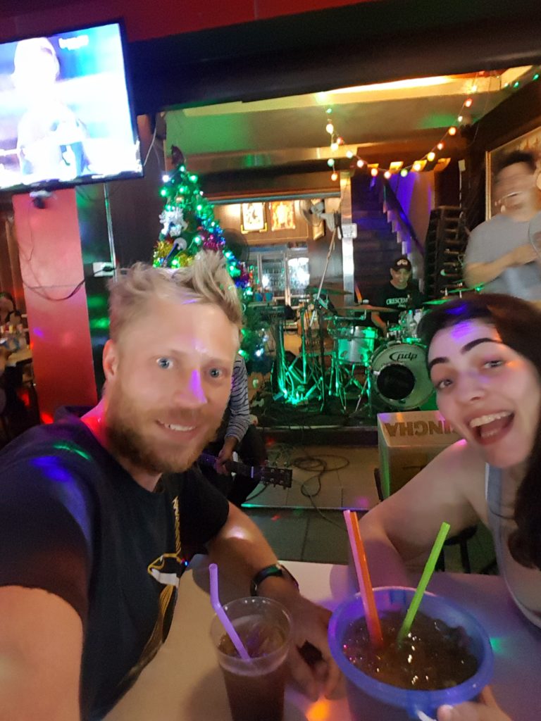 For dinner I went to a restaurant near Khaosan road, then went for a stroll in the nearby area. I found a bar with a pretty decent live band and decided to grab a beer and listen to them play. As I was sitting there, a random girl asked me if she could join. I didn’t mind having some company so I said yes. Dima turned out to be really nice and we had a fun night together, stopping for drinks at a couple different bars.