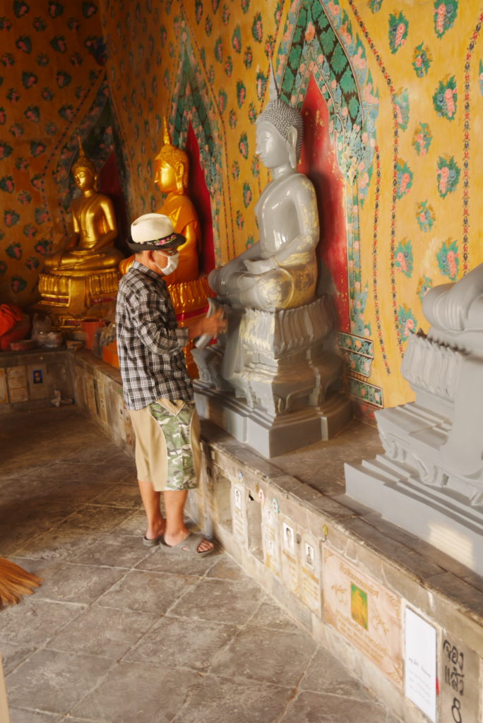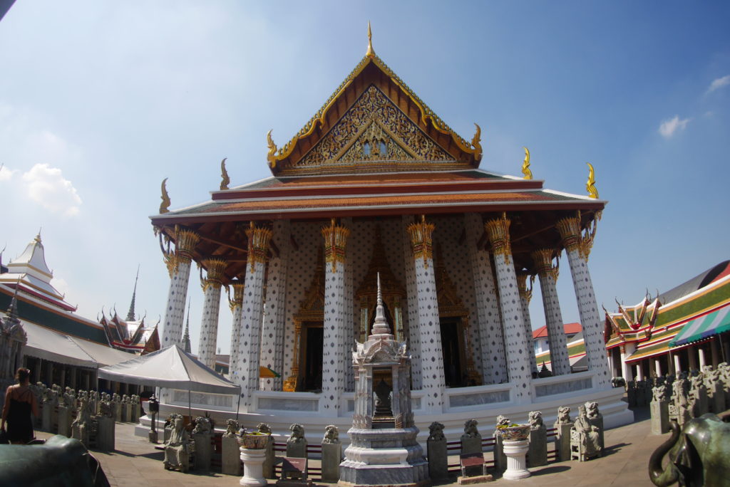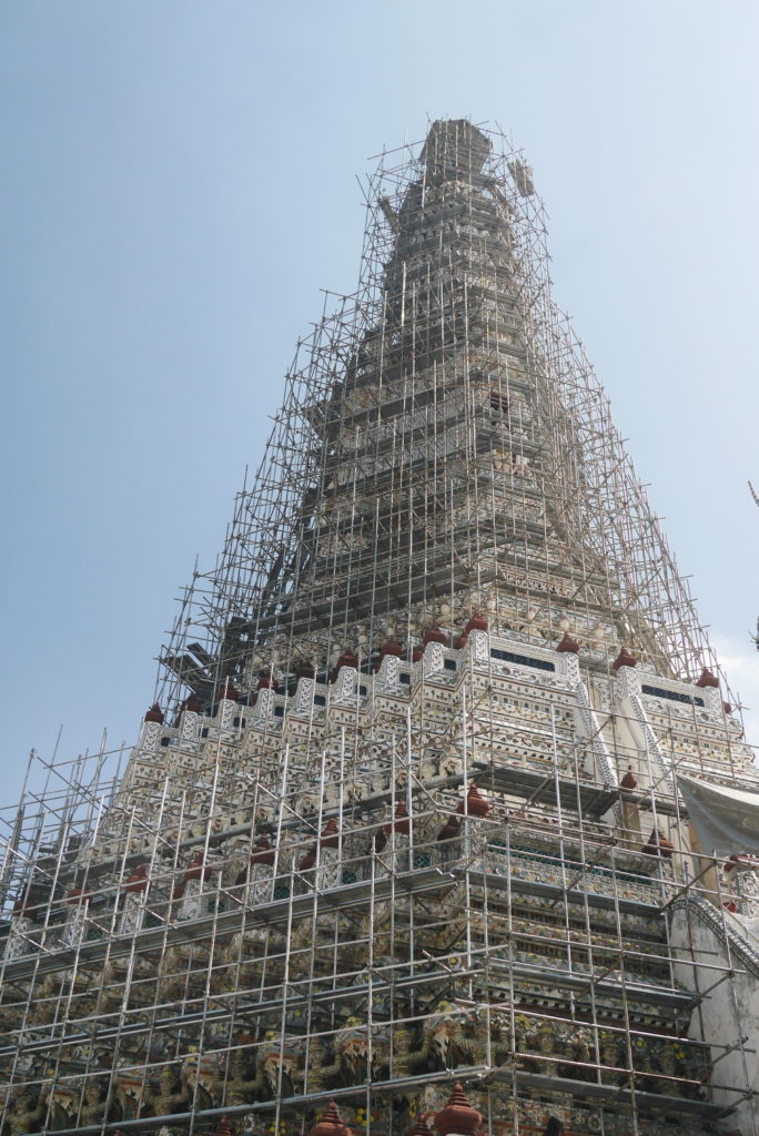 Anyhow, on to the sightseeing. Though I’m pretty templed out I felt I had to visit the last famous temple in the city, Wat Arun or the temple of dawn. What I hadn’t counted on is that the main stupa is being renovated so it’s shrouded in scaffolding. You can see it’s very beautiful underneath all the metal but it kind of ruins the view.