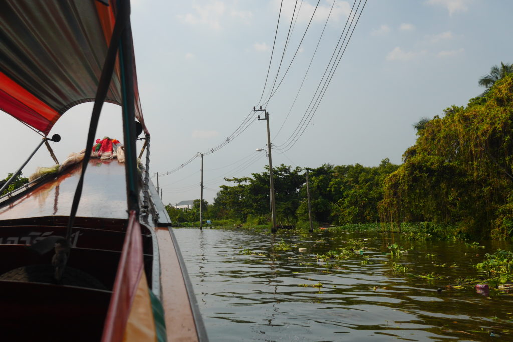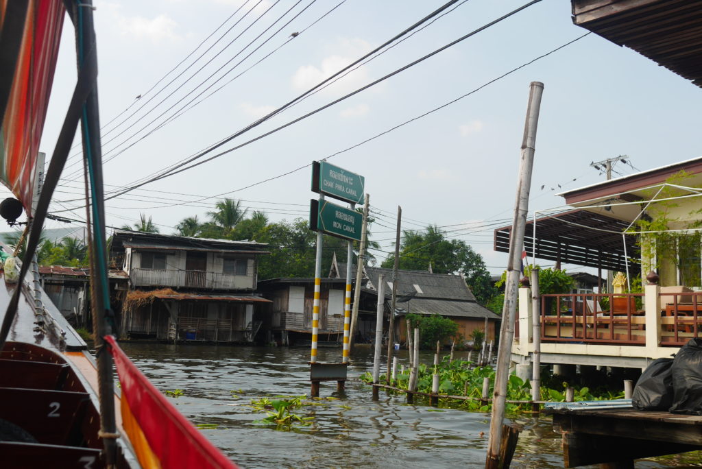 The next day I wanted to take a canal tour which I heard was supposed to be good. I had mentioned it to Dima the night before and she seemed interested so I invited her to join. We met up for lunch then walked down to Tha Tien pier where you take the ferry to Wat Arun. Right next to the ferry ticket booth there’s a small sign saying “canal tour”, pointing to the right. A lady there sold us the tickets and set us up with a boat and driver. The canals are in the old part of Bangkok, on the west side of the river. When you’re there you feel like you’ve left the city, all you see is small wooden stilt houses, porches overflowing with plants, not a single skyscraper in sight. It kind of reminds me of the floating villages I’ve seen but perhaps a bit more developed since it’s in the city.