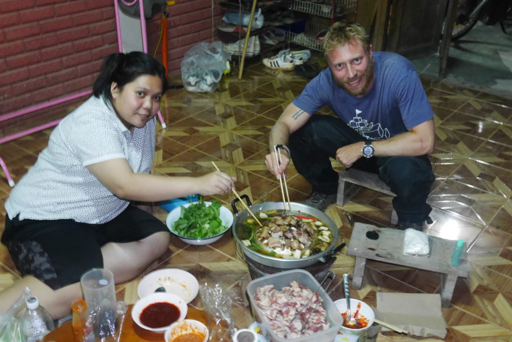 The home stay I’m at, Uncle Aods Home, is really good. Just as I was about to head out for dinner, my host and hostess invited me in to eat with them. We had some kind of Thai barbecue called mugata. While we ate, they kept talking, mentioning sights worth visiting in the nearby area. It seems I have my work cut out for me if I want to see them all.