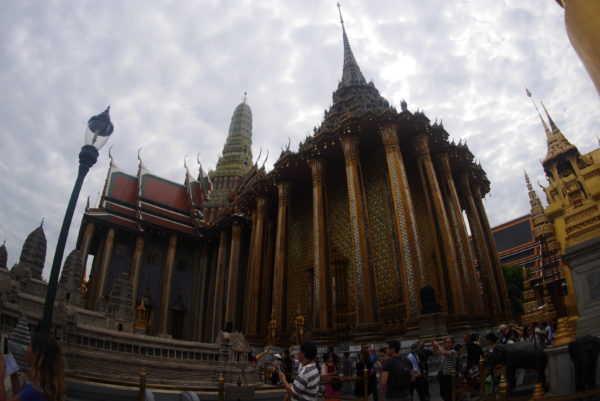 I’ve had an active day in Bangkok, doing the rounds of the main tourist attractions. I started with the Grand Palace and Wat Pra Kaeow, both of which are full of both splendor and tourists. It’s almost too much gold and decorations to take it all in and as you get jostled around by the other visitors it’s a bit stressful. I also noted that except for the billboards honoring the king, there were hundreds of black clad Thai people around the palace, waiting to pay their respects.