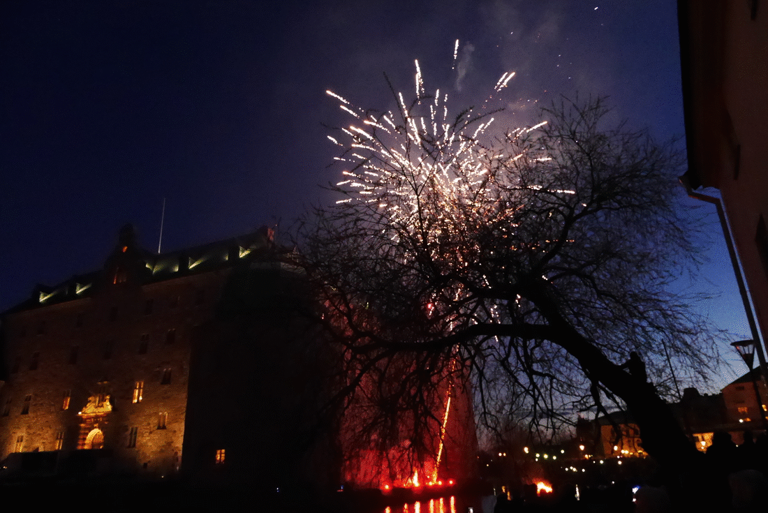 After the wedding, Yini and I went up to Örebro to meet my parents. As it was April 30, we went up to Örebro Castle to celebrate Walpurgis Night, a tradition celebrated in several parts of Europe, among them Sweden; people light big bonfires and nowadays also set off fireworks to celebrate the arrival of spring. I haven’t been to a proper Walpurgis celebration in years and this one was really good, with a big bonfire on a raft floating in the castle moat, a choir singing spring time hymns and a massive fireworks display.