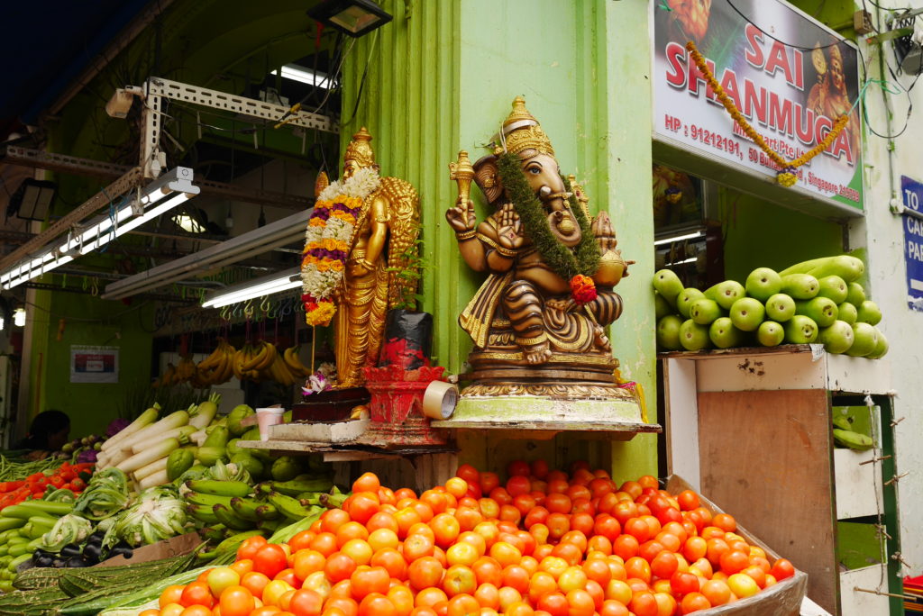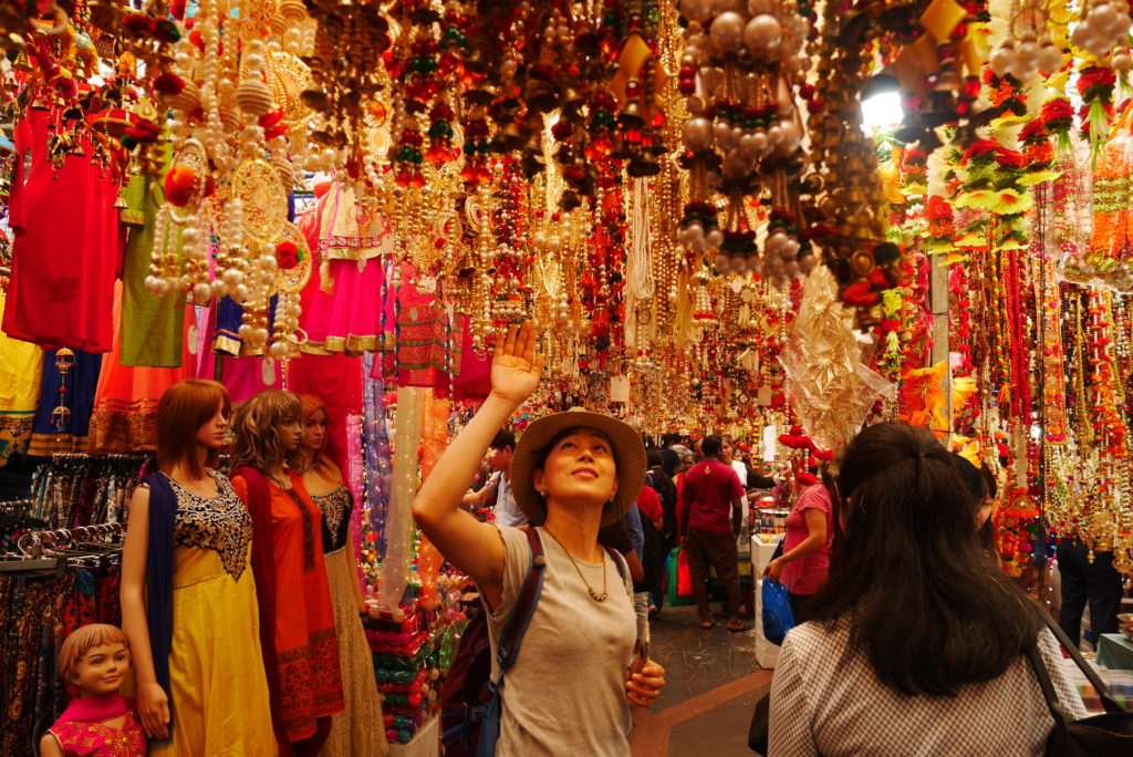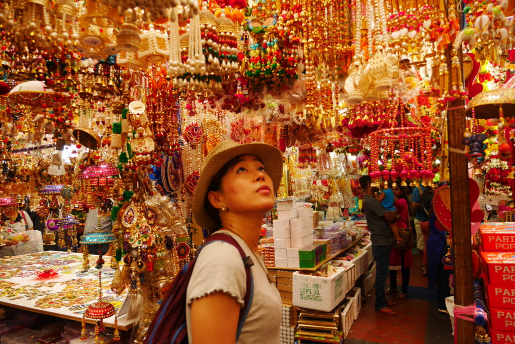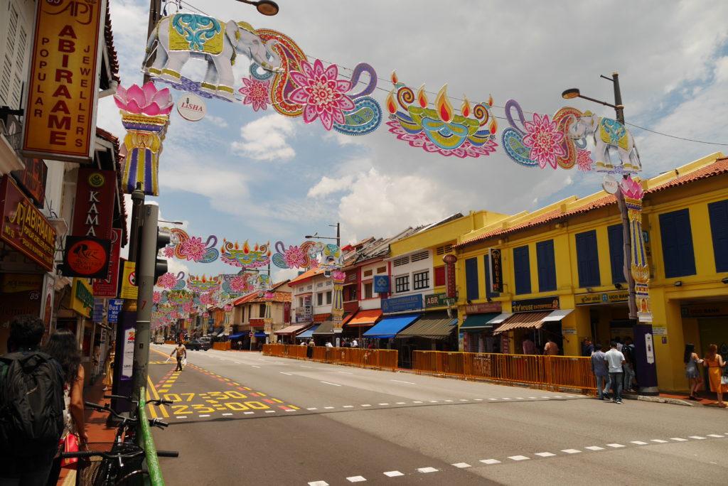 Little India is much more lively than other parts of the city, the buildings are painted in bright colors and plenty of shops line the streets. Except for the lack of cows in the streets, it’s pretty similar to what I’ve seen of real India. Unlike Chinatown, where the vendors market themselves towards tourists, the shops in Little India are aimed at locals. They sell a lot of Indian style clothing and massive amounts of gold, just shop after shop of golden necklaces. When we were looking around Little India we also found a market in preparation for the Deepavali festival which apparently is one of the biggest festivals in the Hindu calendar. It’s one of the most amazing markets I’ve ever been to, with lots of colorful everything whatever direction you turn.
