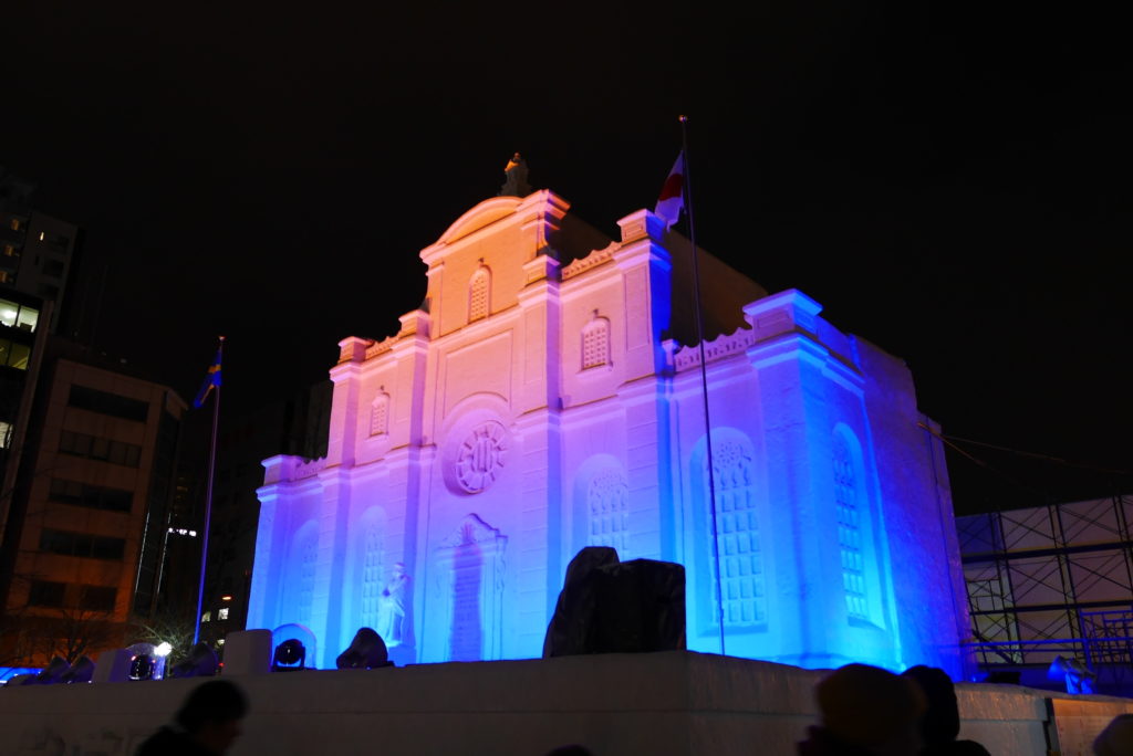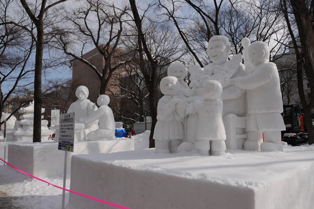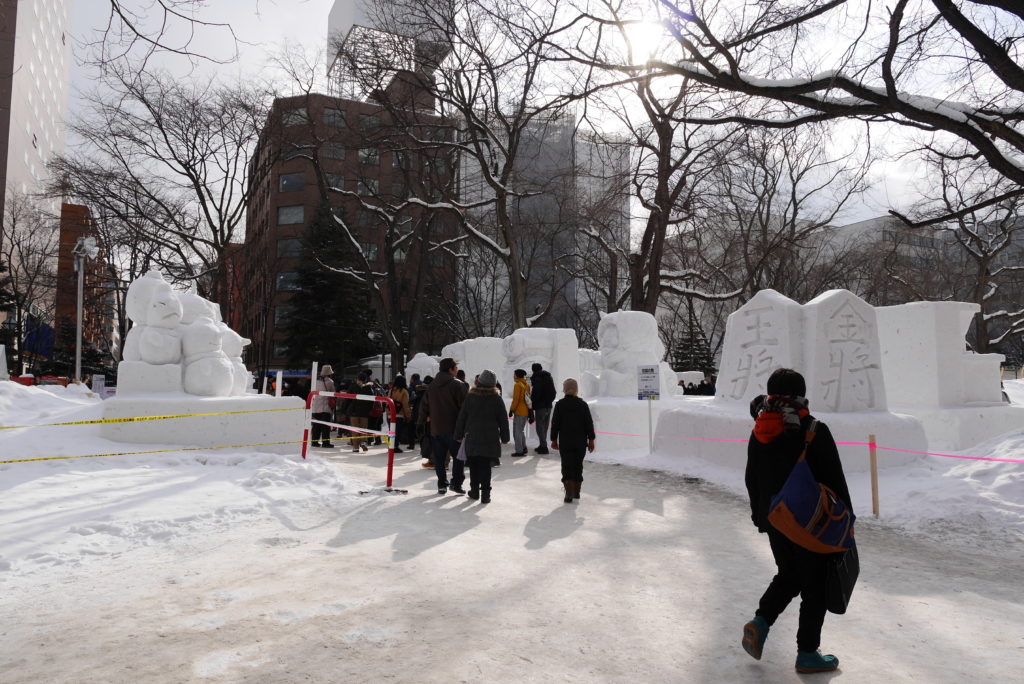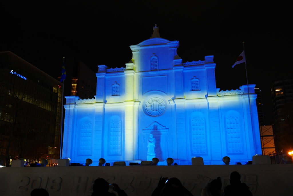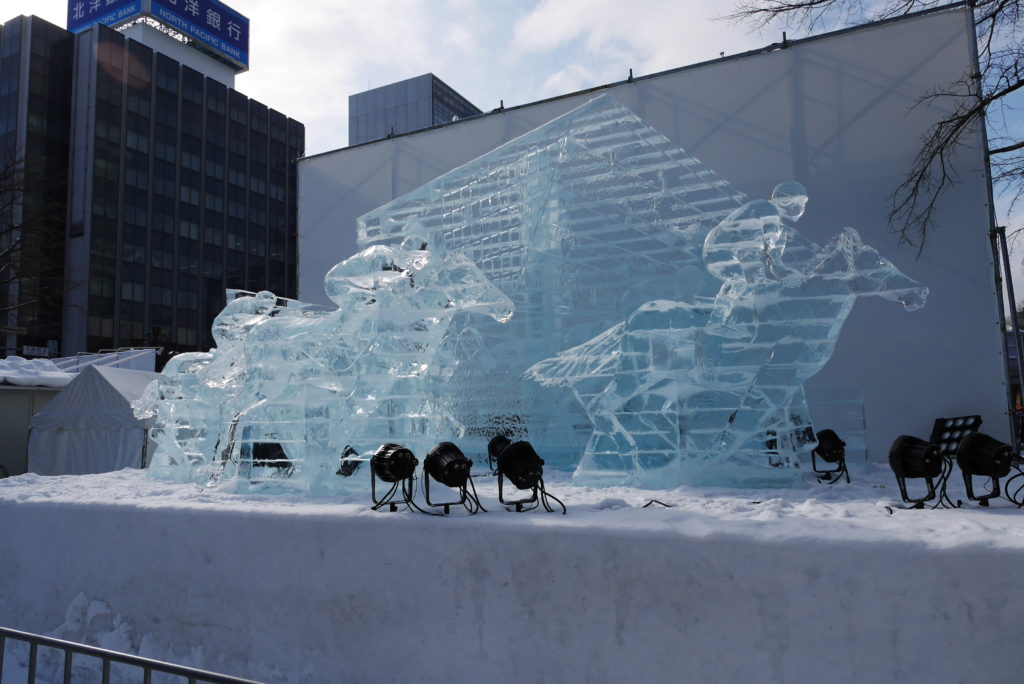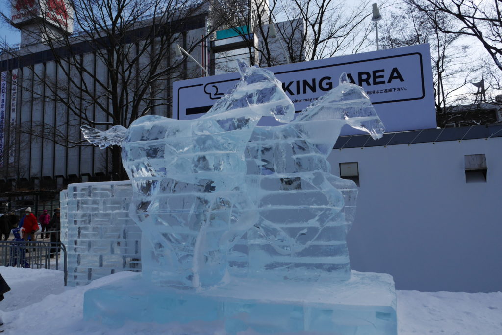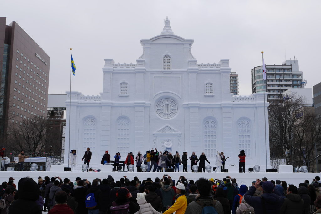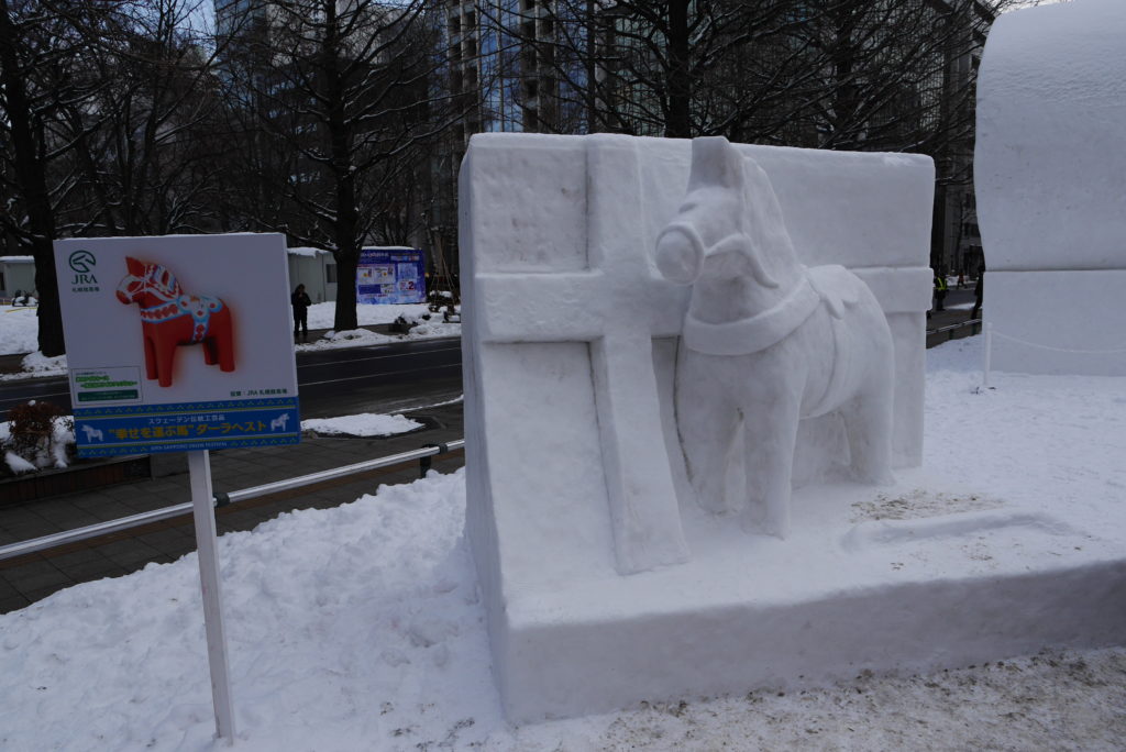 Sapporo is the main city in Hokkaido and though it’s smallish by Japanese standards it’s a real city where people live and work, not just a resort. As such there are plenty of places you can visit from parks to museums to shopping streets. By pure luck we managed to time our arrival in the city with annual snow festival. Even luckier was that our hotel was located just by the Odori park which is where the snow festival is held. Consequently we spent a fair bit of time strolling through the festival area, looking at the various snow sculptures and performances. As it happened, this year marks 150 years of diplomatic relations between Japan and Sweden and part of the festival area was dedicated to Sweden with a giant snow sculpture of Stockholm Cathedral (Storkyrkan), a Dalecarlian horse (dalahäst) made from snow, and performances by fake ABBA.