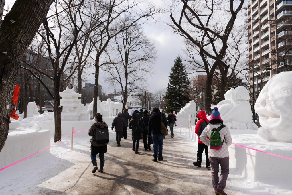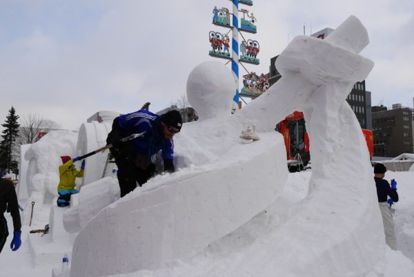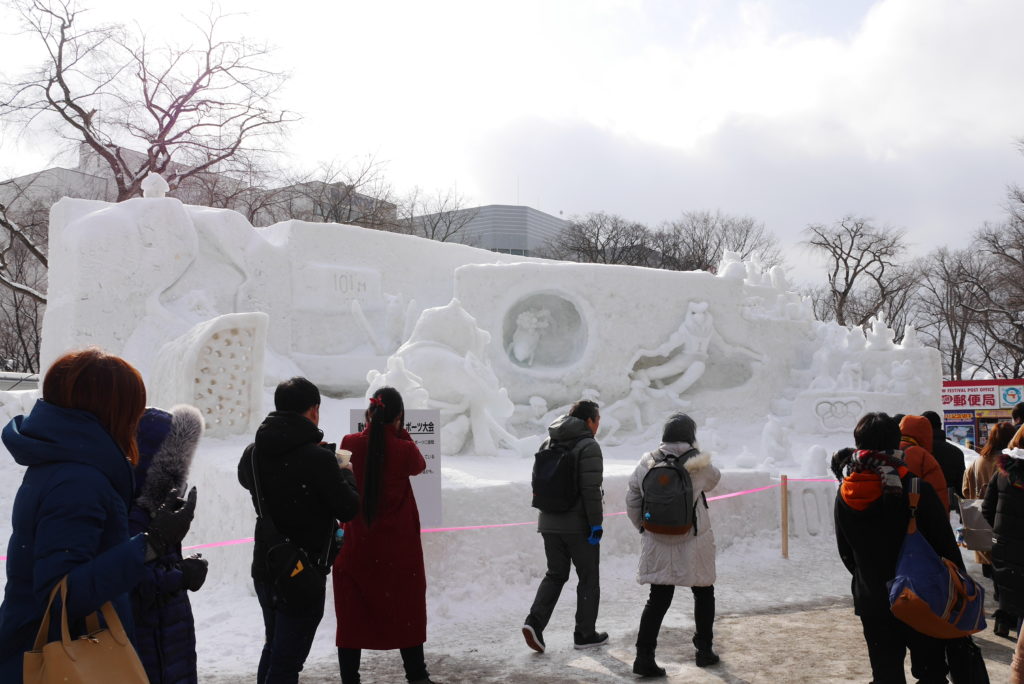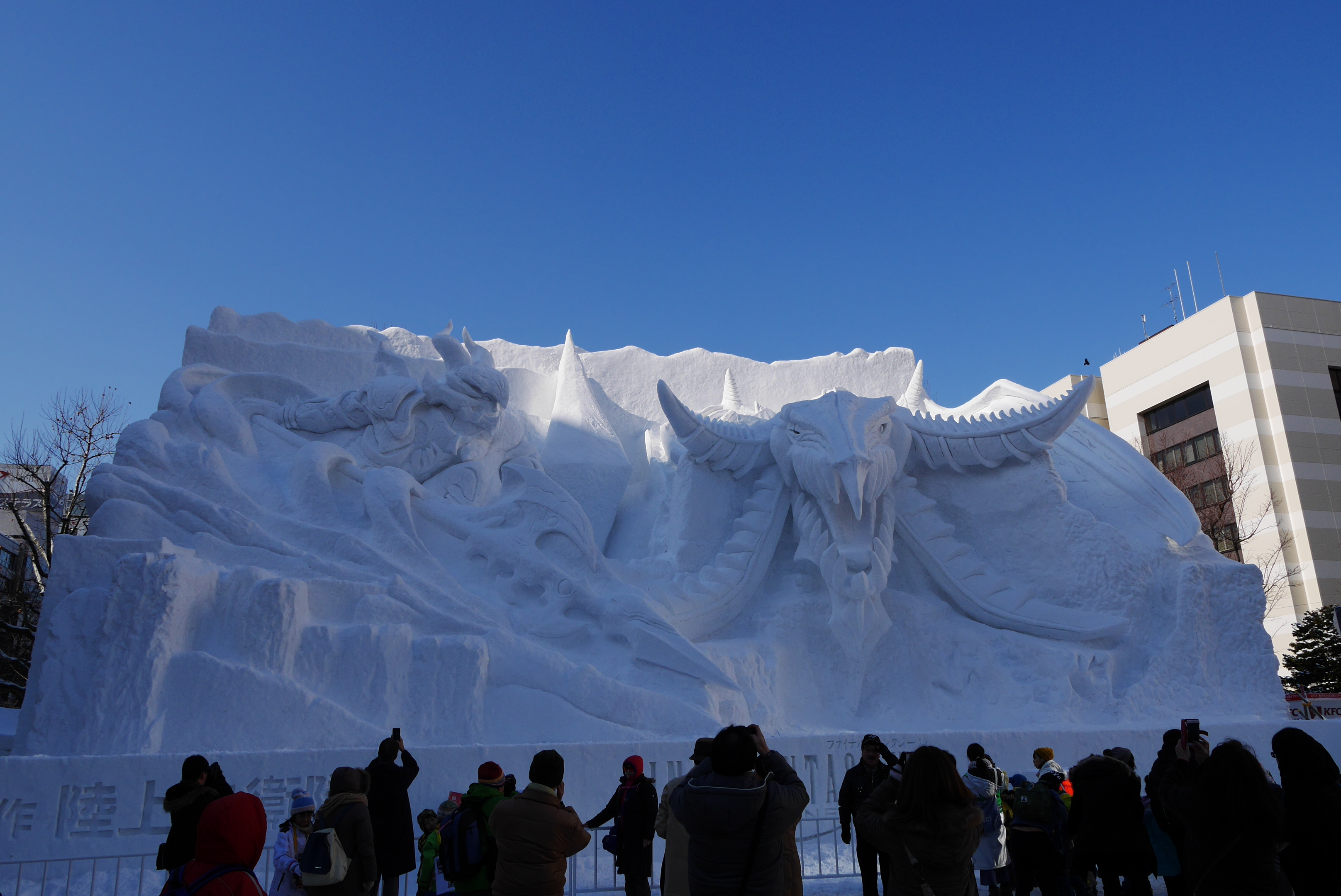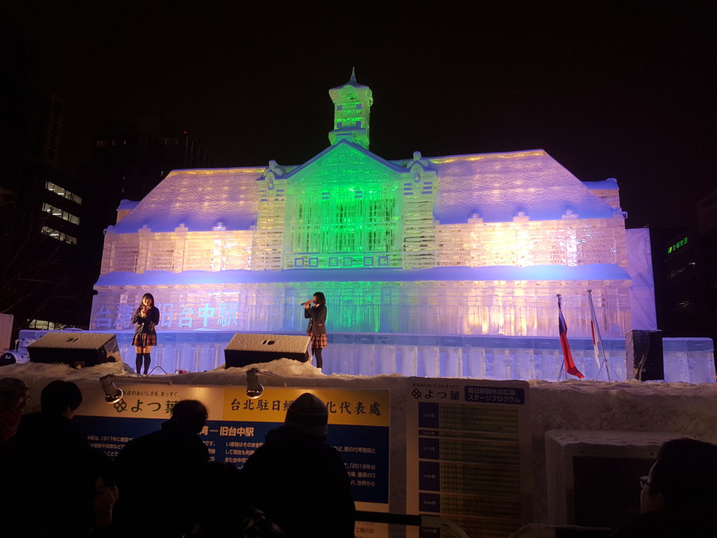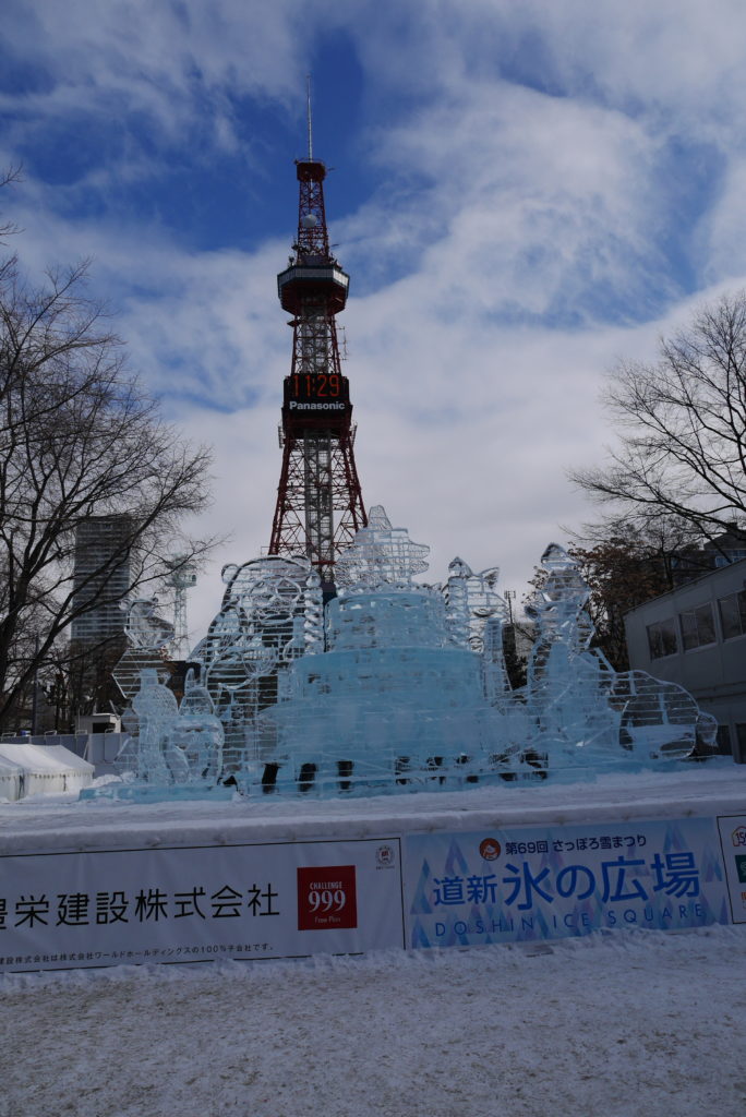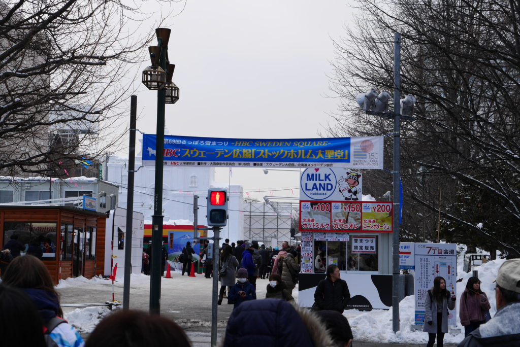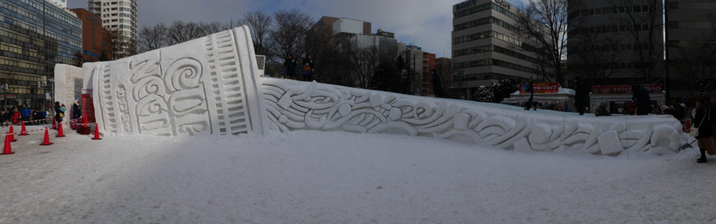 Sapporo is the main city in Hokkaido and though it’s smallish by Japanese standards it’s a real city where people live and work, not just a resort. As such there are plenty of places you can visit from parks to museums to shopping streets. By pure luck we managed to time our arrival in the city with annual snow festival. Even luckier was that our hotel was located just by the Odori park which is where the snow festival is held. Consequently we spent a fair bit of time strolling through the festival area, looking at the various snow sculptures and performances. As it happened, this year marks 150 years of diplomatic relations between Japan and Sweden and part of the festival area was dedicated to Sweden with a giant snow sculpture of Stockholm Cathedral (Storkyrkan), a Dalecarlian horse (dalahäst) made from snow, and performances by fake ABBA.