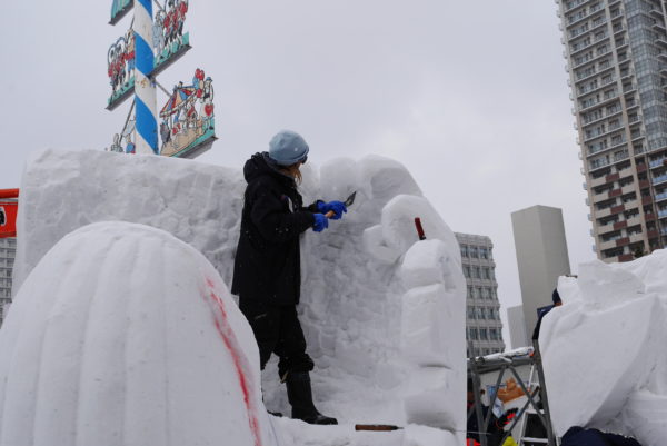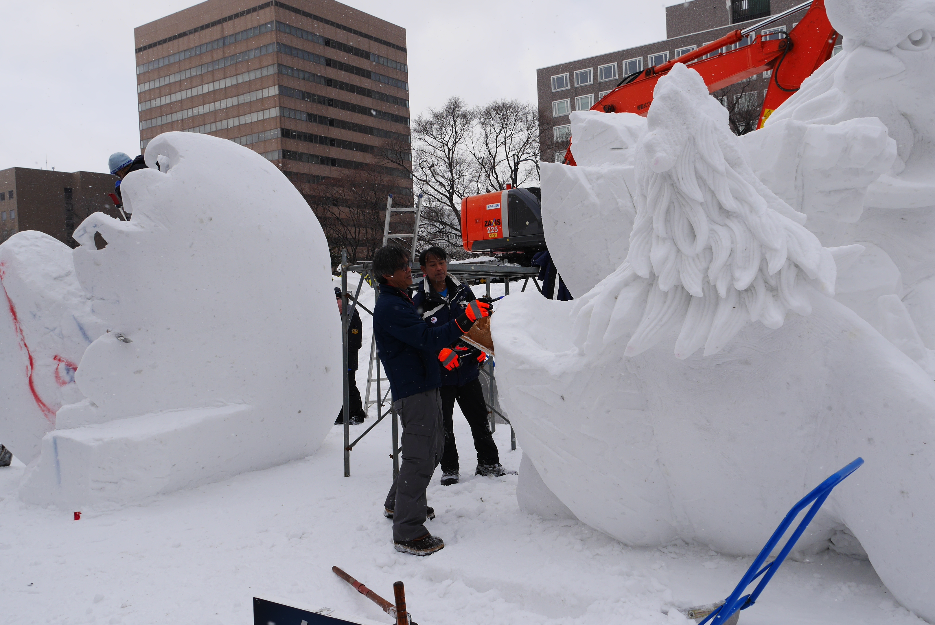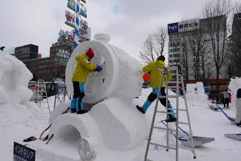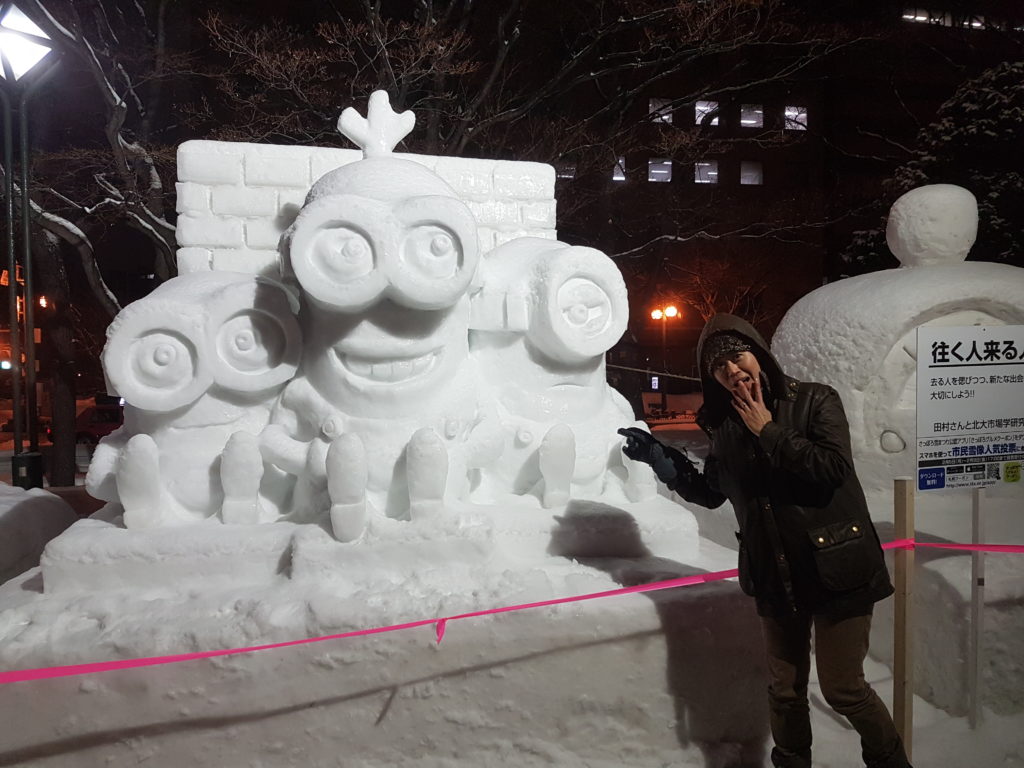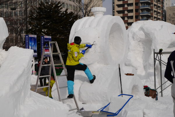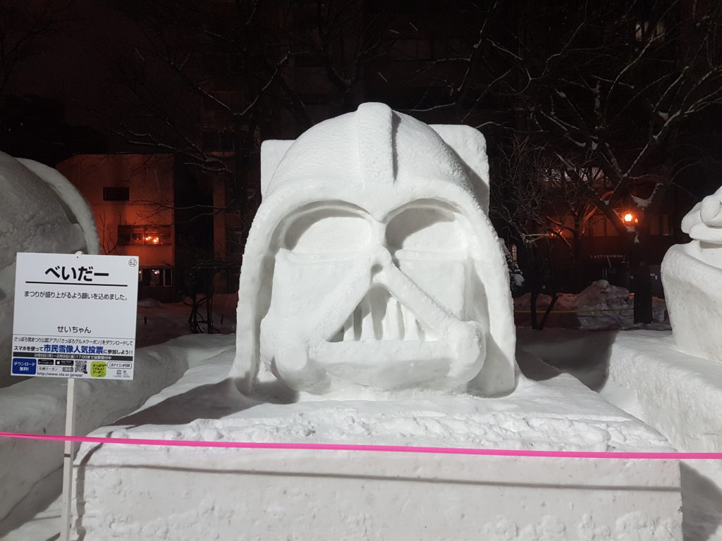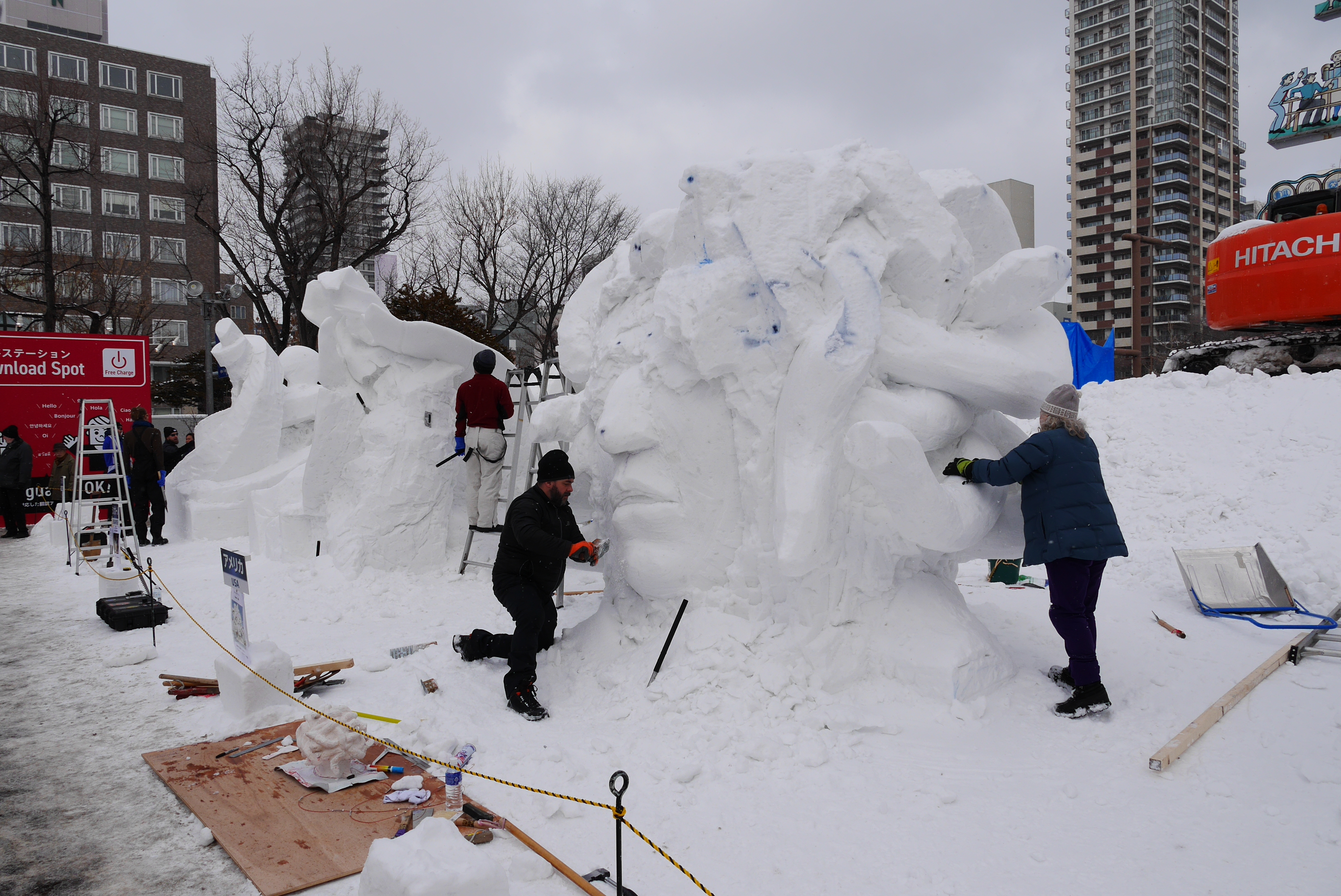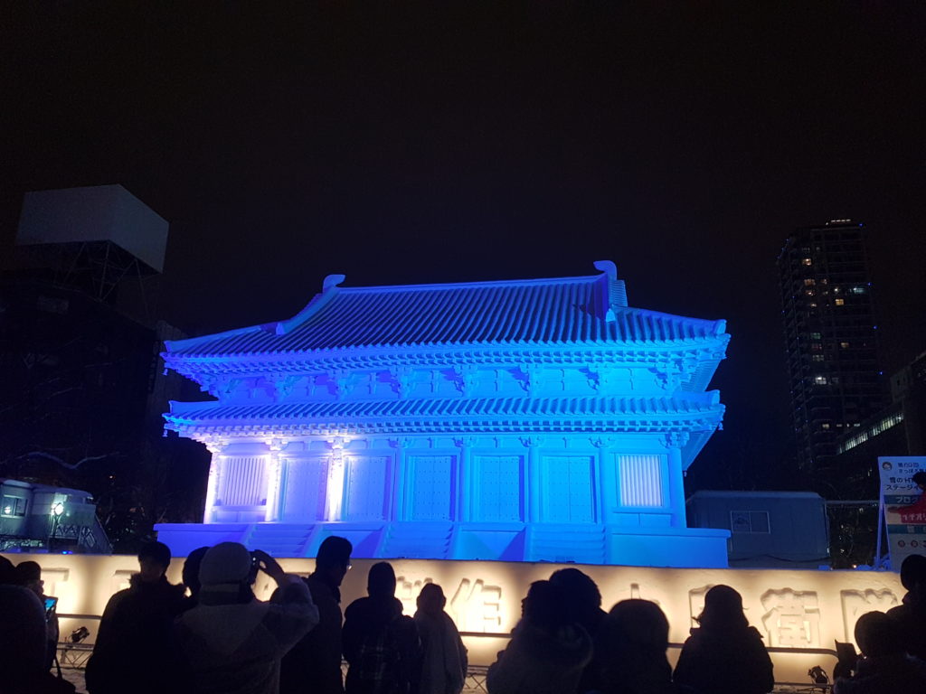 Sapporo is the main city in Hokkaido and though it’s smallish by Japanese standards it’s a real city where people live and work, not just a resort. As such there are plenty of places you can visit from parks to museums to shopping streets. By pure luck we managed to time our arrival in the city with annual snow festival. Even luckier was that our hotel was located just by the Odori park which is where the snow festival is held. Consequently we spent a fair bit of time strolling through the festival area, looking at the various snow sculptures and performances. As it happened, this year marks 150 years of diplomatic relations between Japan and Sweden and part of the festival area was dedicated to Sweden with a giant snow sculpture of Stockholm Cathedral (Storkyrkan), a Dalecarlian horse (dalahäst) made from snow, and performances by fake ABBA.