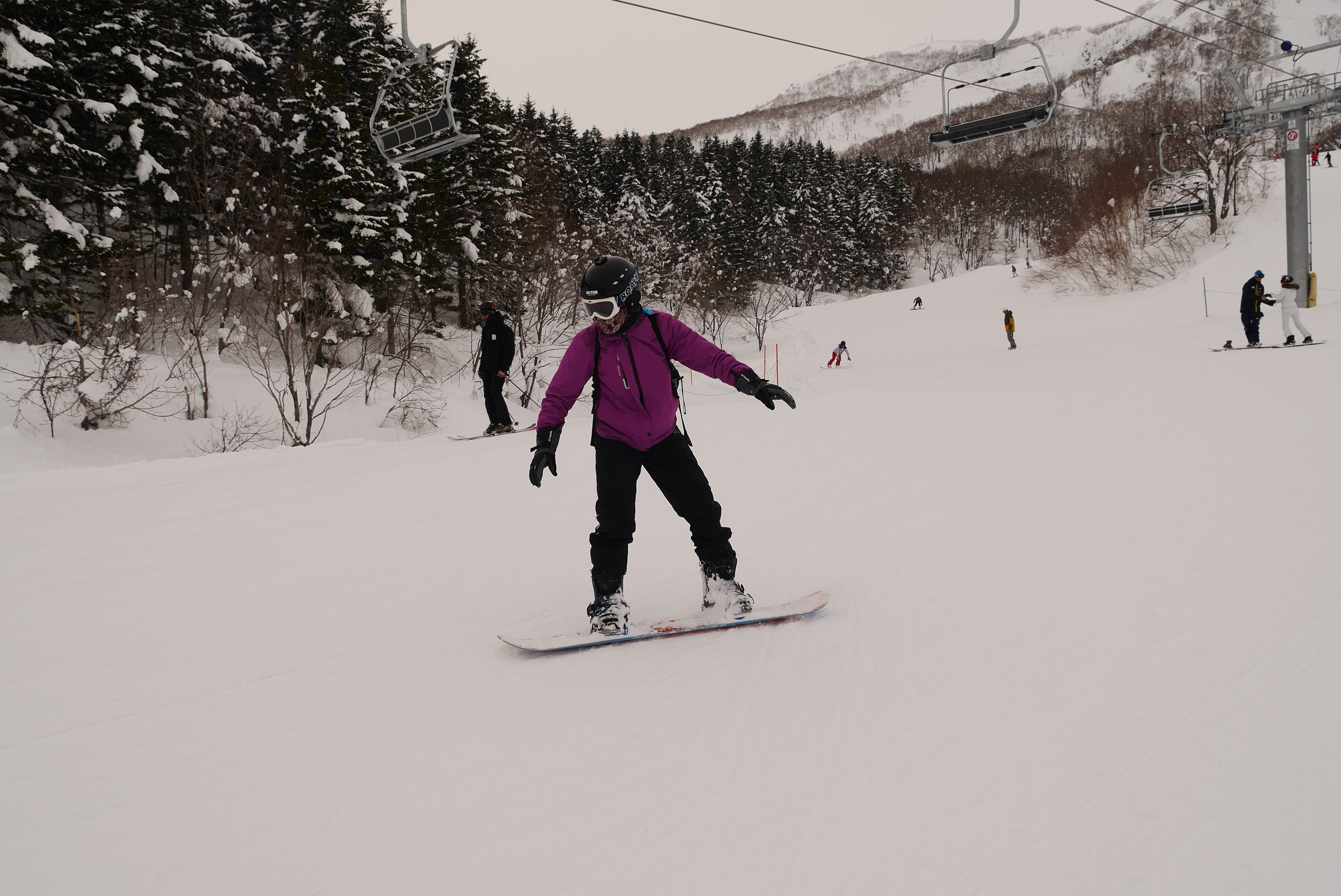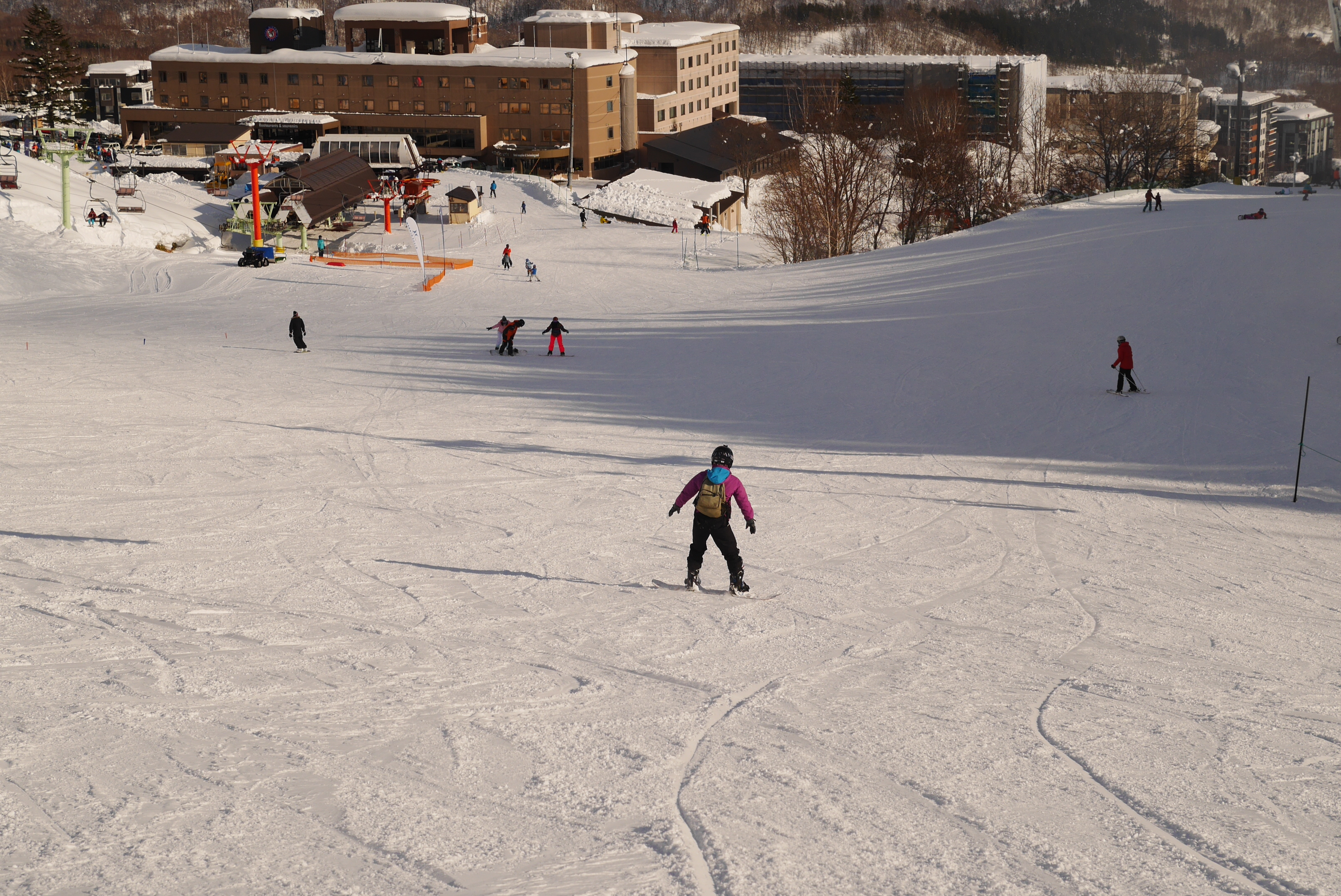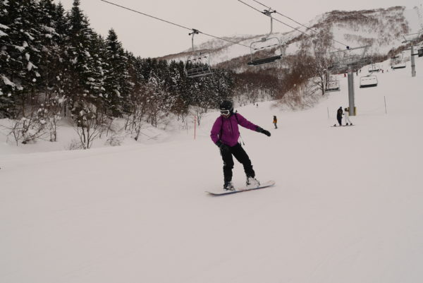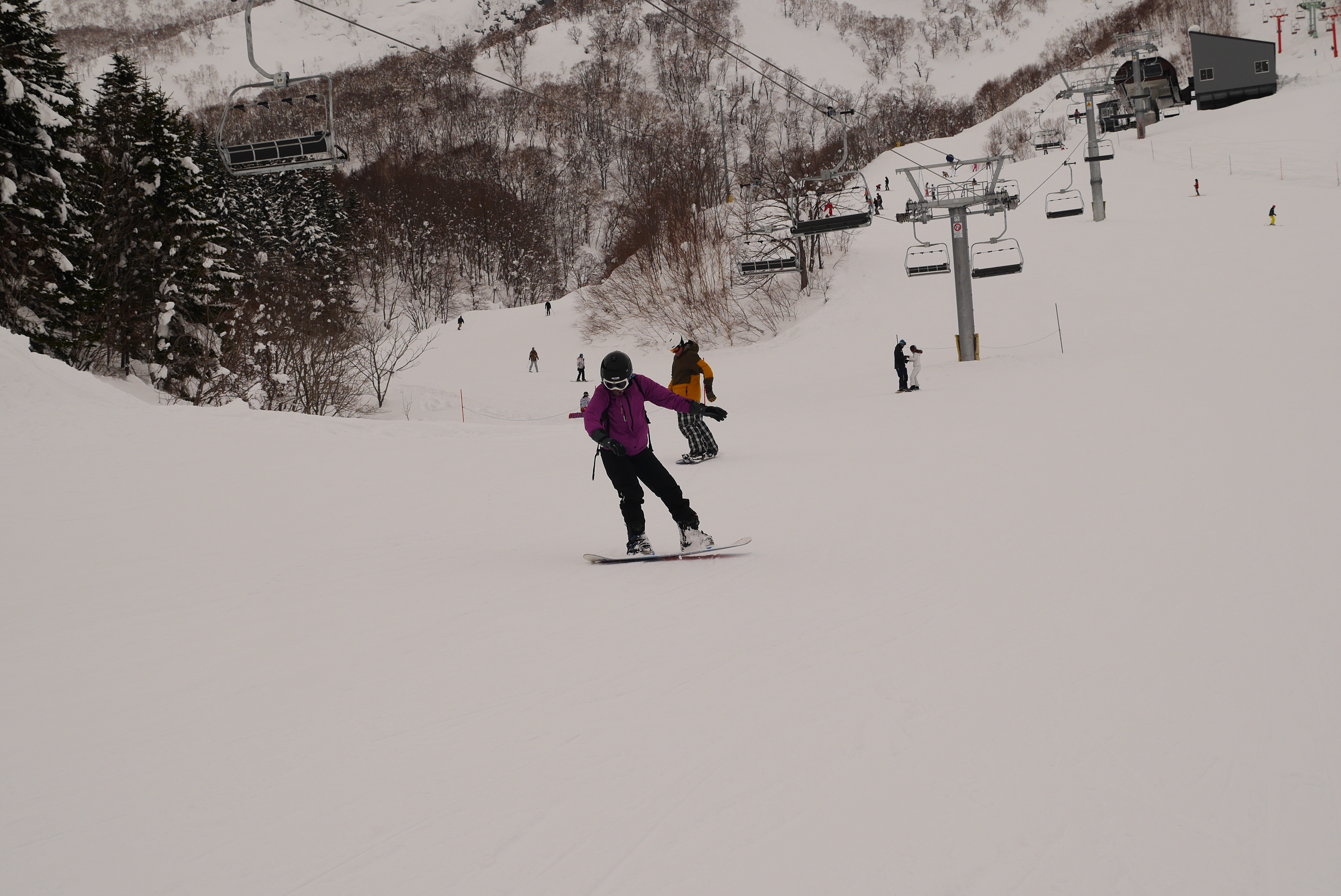 All four ski areas have their own family slope where the absolute beginners can practice their first turns. Due to a cold poor Yini was forced to stay indoors in Kiroro, but in Niesko she was finally feeling well enough to hit the slopes. It took her a few runs to dust off her skills but by the second day she was doing really well and with me as her coach she learned quickly. I really want to stress how far she progressed so I am listing all her achievements here: