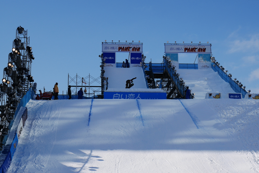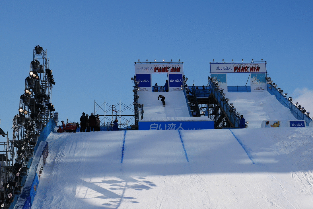 They had a big air jump set up in the festival area, above are some of the snowboarders practice jumps