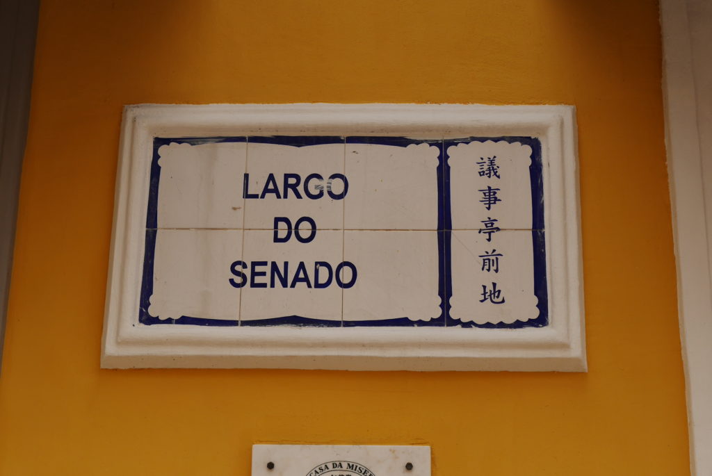 Senado square sign, I love the way they have both Portuguese and Chinese on the street signs