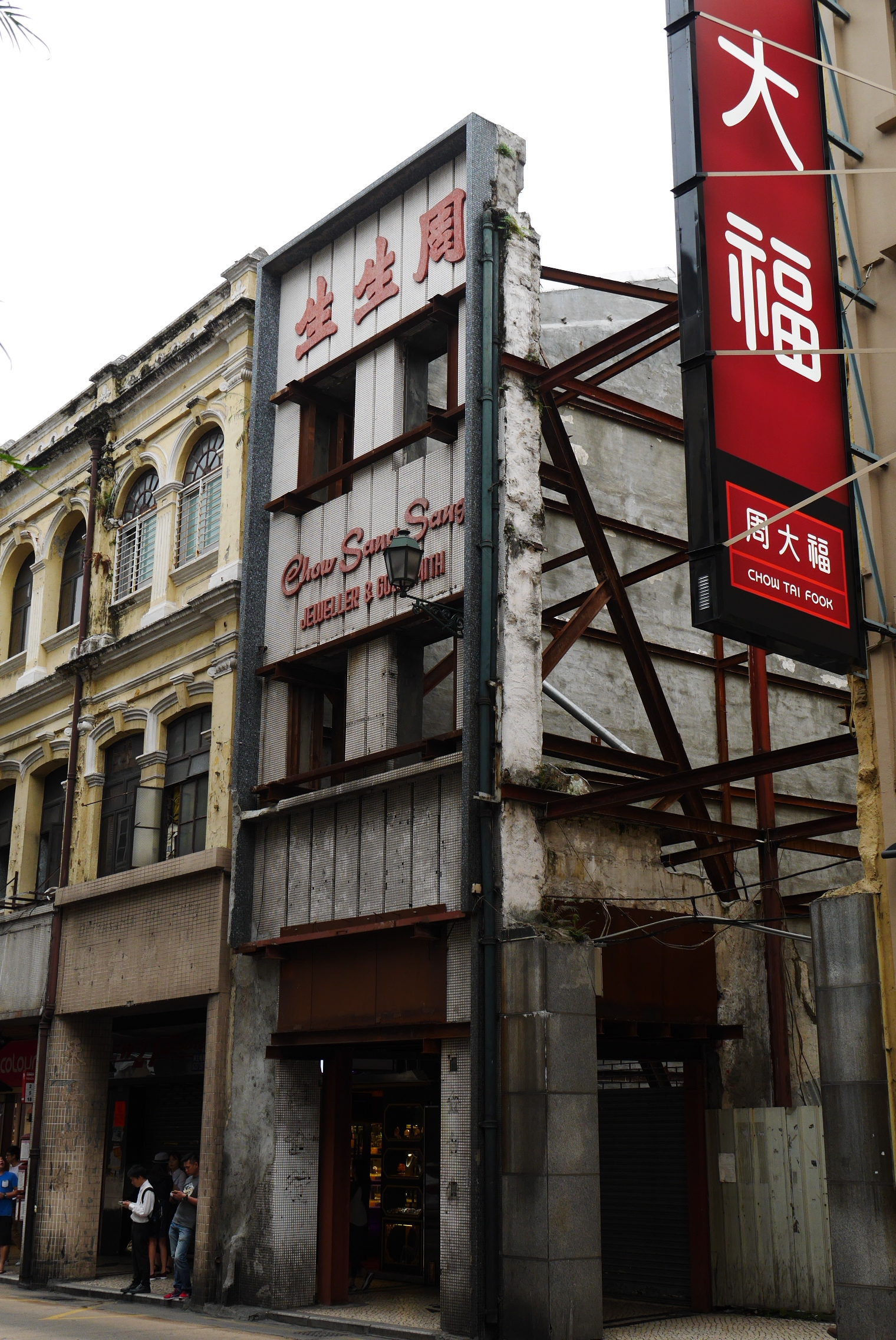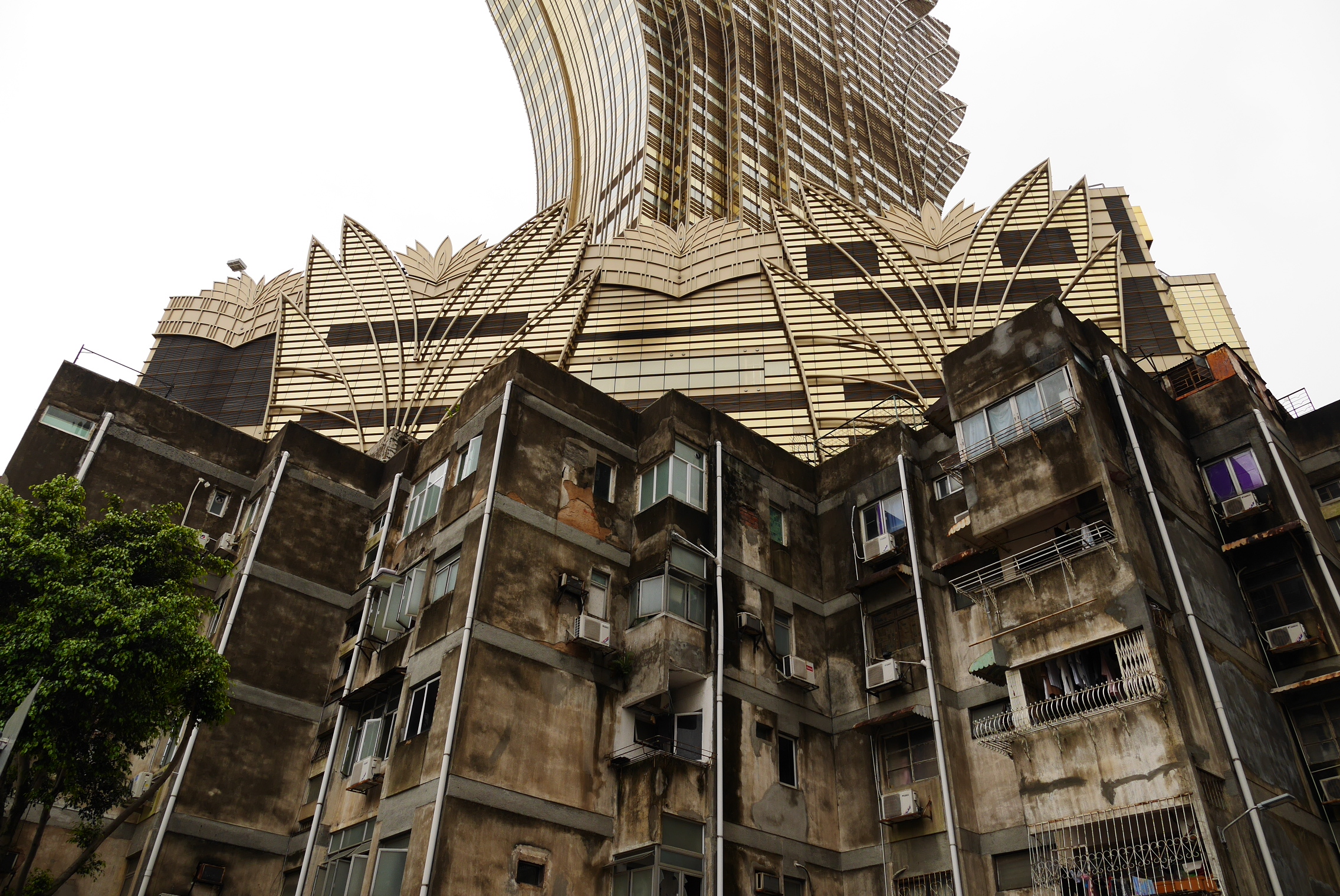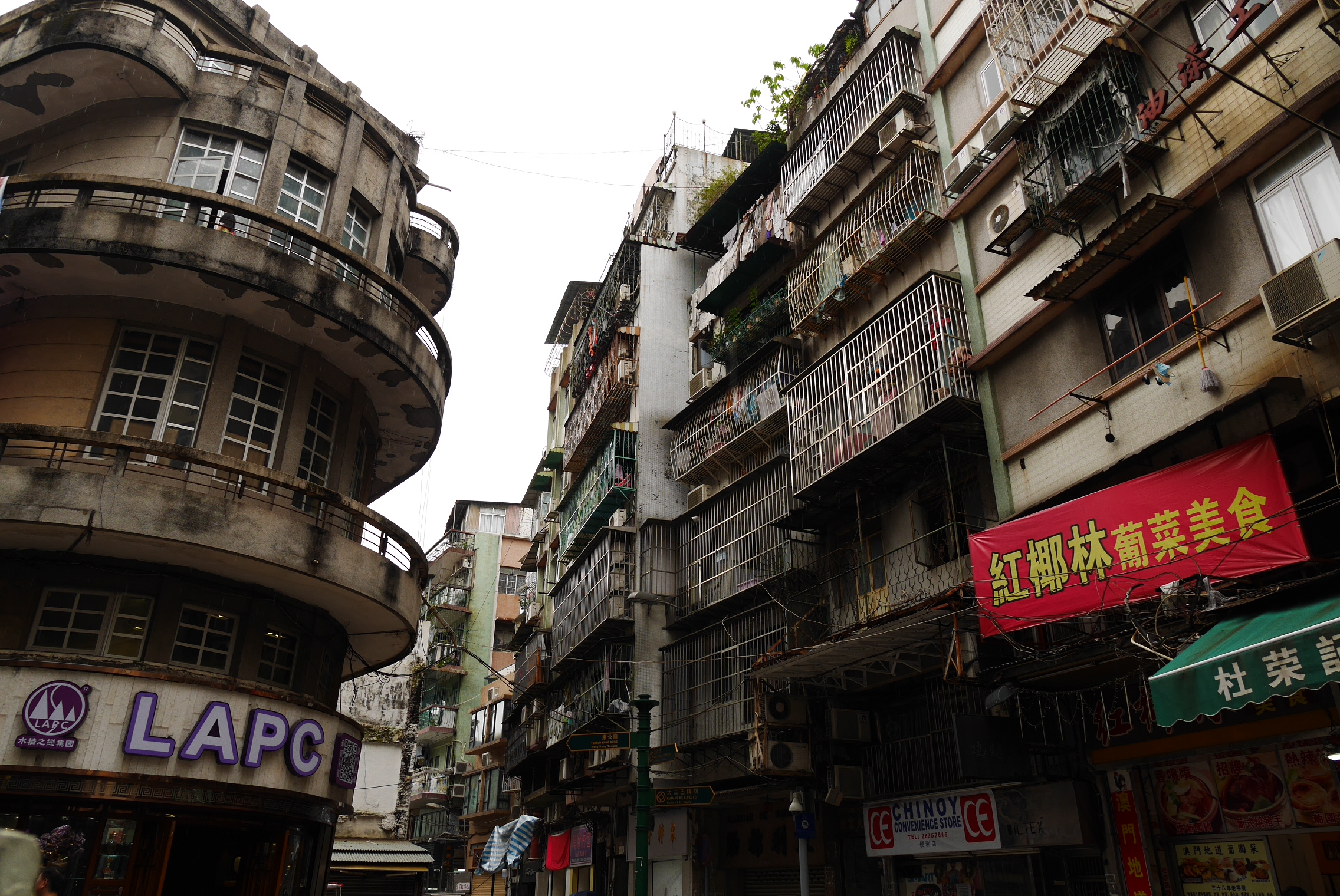 Except for the casinos, which are indeed impressive, the tourist attractions in Macau are really not that spectacular; you can find other much more interesting places to visit in nearby countries. That being said, I greatly enjoyed my trip to Macau. My favorite thing was not any tourist site in particular, but rather to go strolling around in old town and explore the narrow streets and alleys. A lot of it looks like Coloane but on a much larger scale and there’s something about all these old, dilapidated buildings that really speaks to me. I know this kind of thing probably doesn’t appeal to the average tourist but I find it fascinating. I especially love the contrasts that you see in this city: You have old colonial style buildings with shop signs in Chinese in true east meets west fashion. You have apartment buildings with dirty facades, laundry hanging to dry on caged balconies a short bus ride away from the palace-like casinos. Most striking of all, you have buildings so broken down you think they will collapse within spitting distance of the golden gleaming Grand Lisboa.