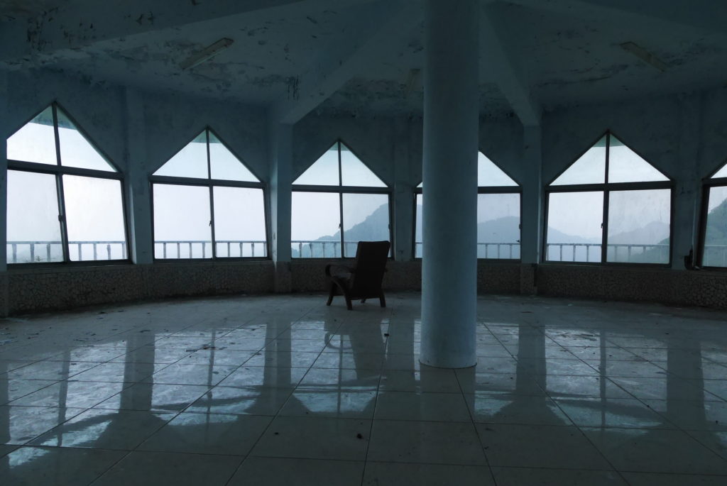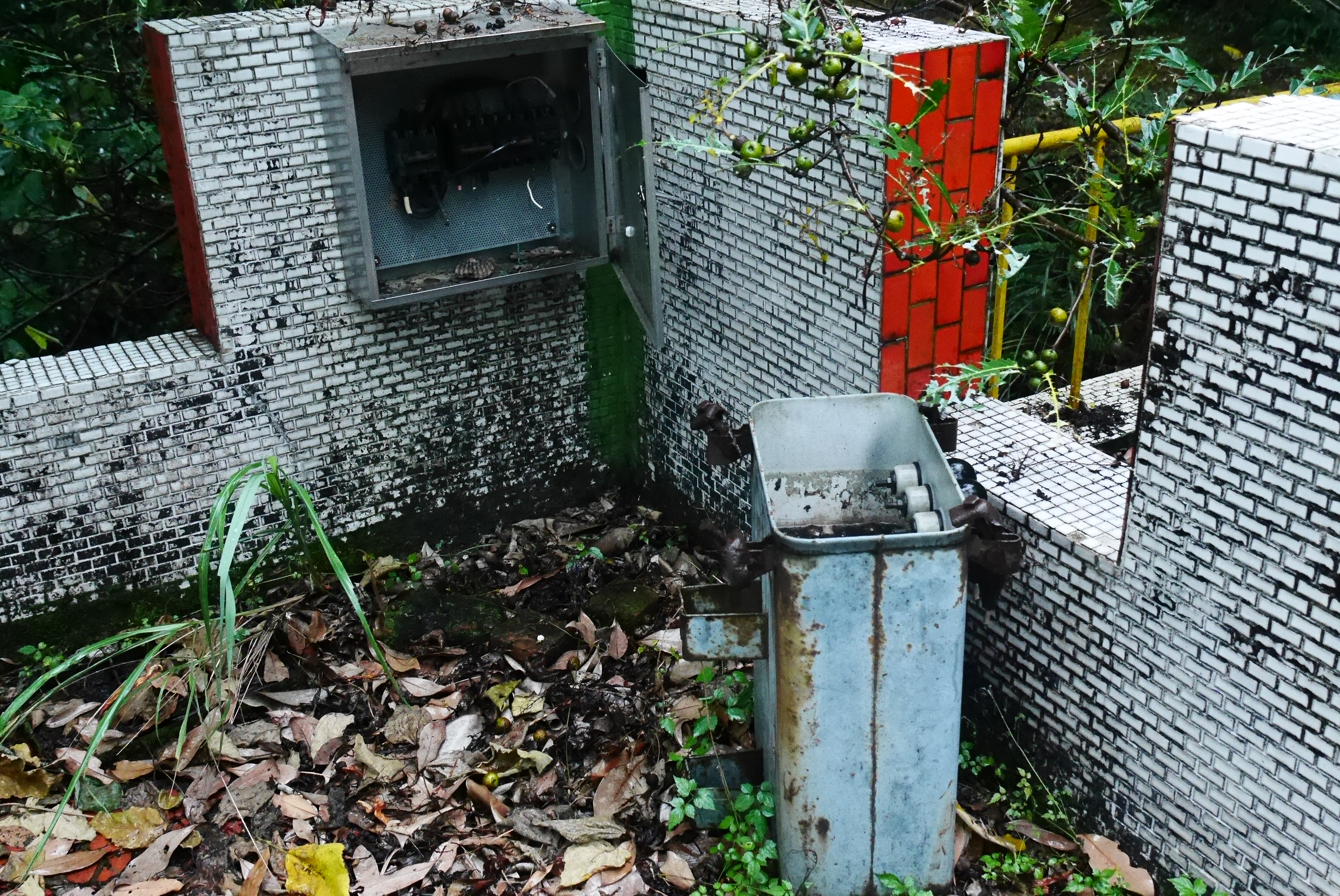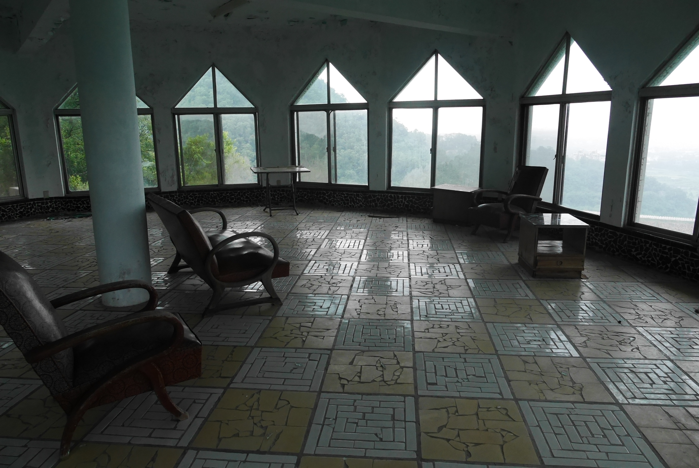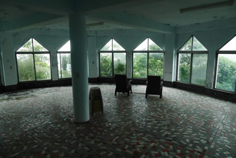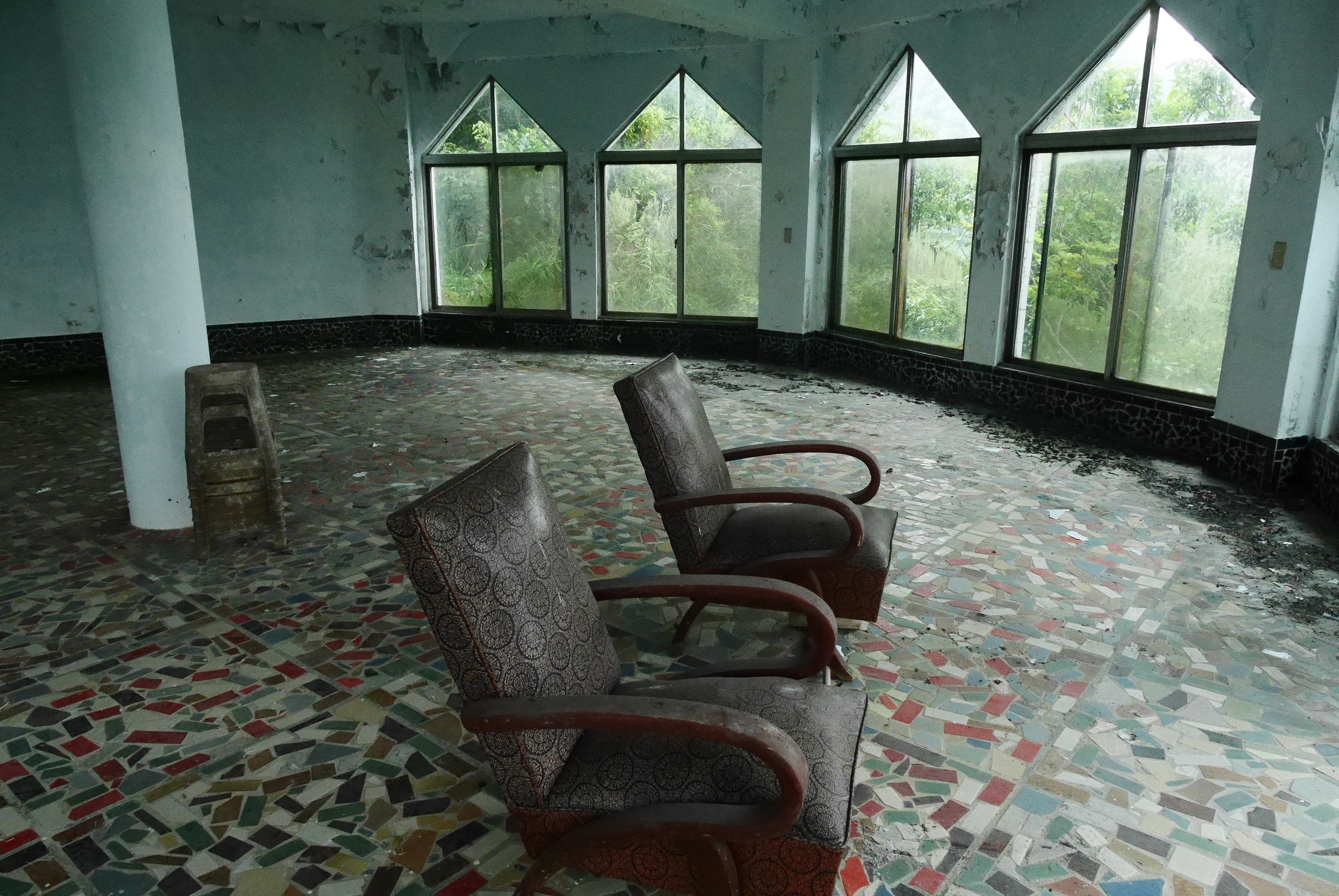 It was a nice but uneventful ride out, and we arrived ready to explore. We grabbed our stuff and started walking down towards the parts we hadn’t seen before. Almost as soon as we entered, it started to drizzle but no matter, we had our umbrellas so we kept walking. When we got to the building overlooking the reservoir we stopped to take a break and I just had to go in to take a quick look. It was as if no one had been there since I went in last time; the furniture seemed to be in the exact same place as before.