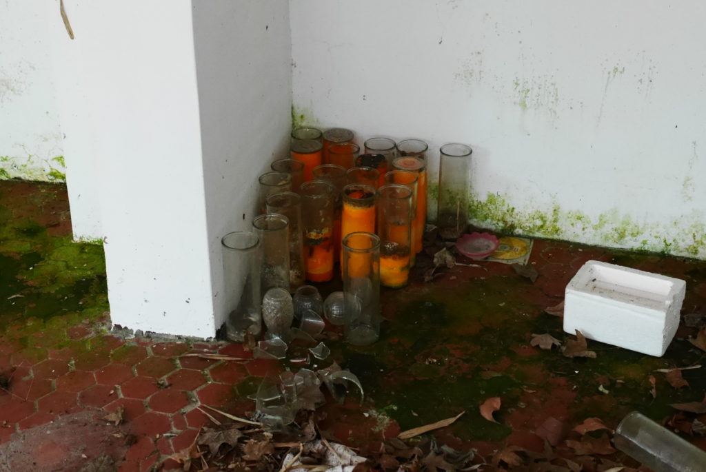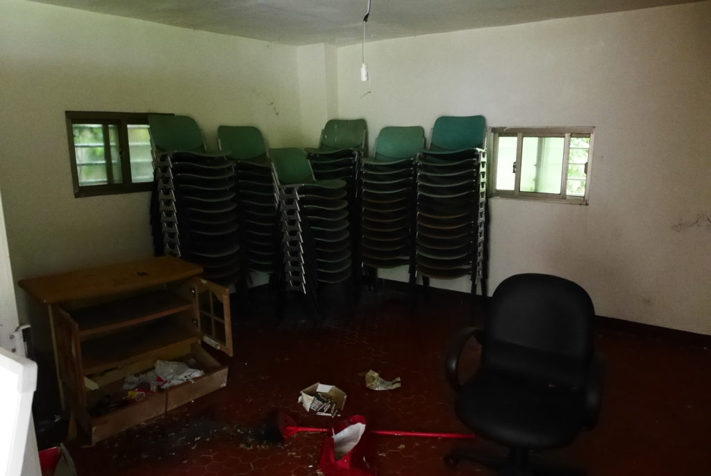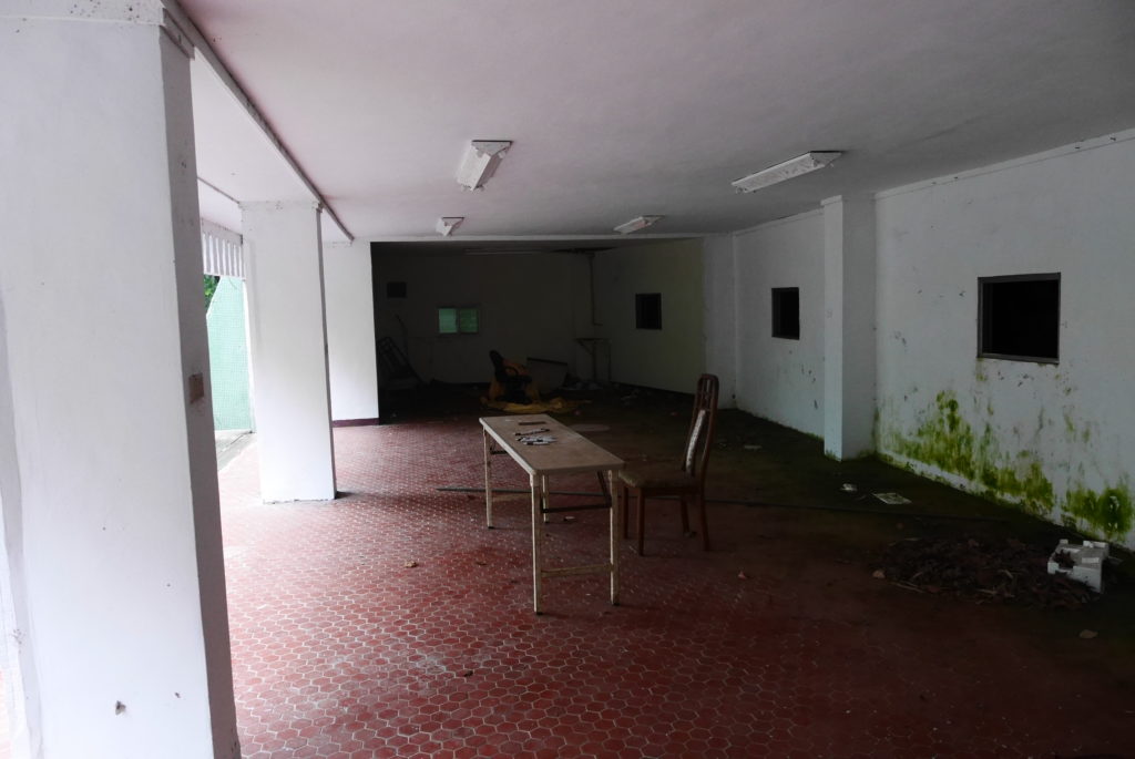 We continued further down and after a few minutes we came to the first previously unseen building of any size. It looked like an overly colorful castle poking out of the jungle. Closer inspection showed that it was some kind of assembly hall with a bit of storage. From the looks of it it had been used in the not too distant past for some kind of activity.