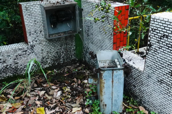 When we got out the rain was heavier but I was determined to see the stuff we had missed last time so we continued. We passed by the little “Russian church” style dormitory where we had stopped last time and continued down a fairly steep slope. After a little while we came to a small, overgrown cube of a building which we couldn’t quite figure out what it was.
