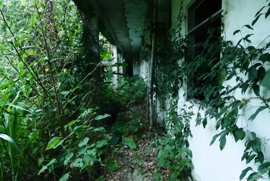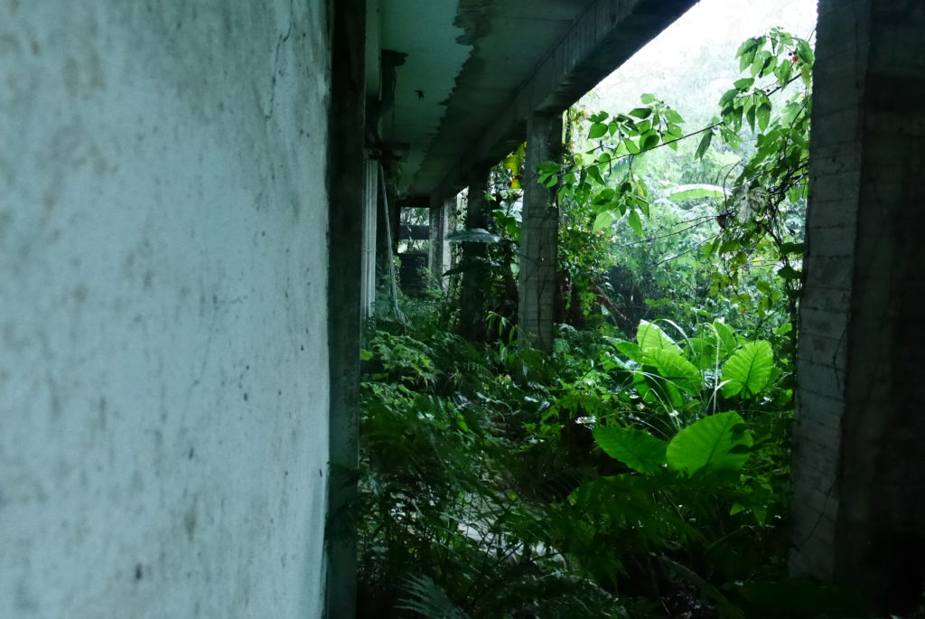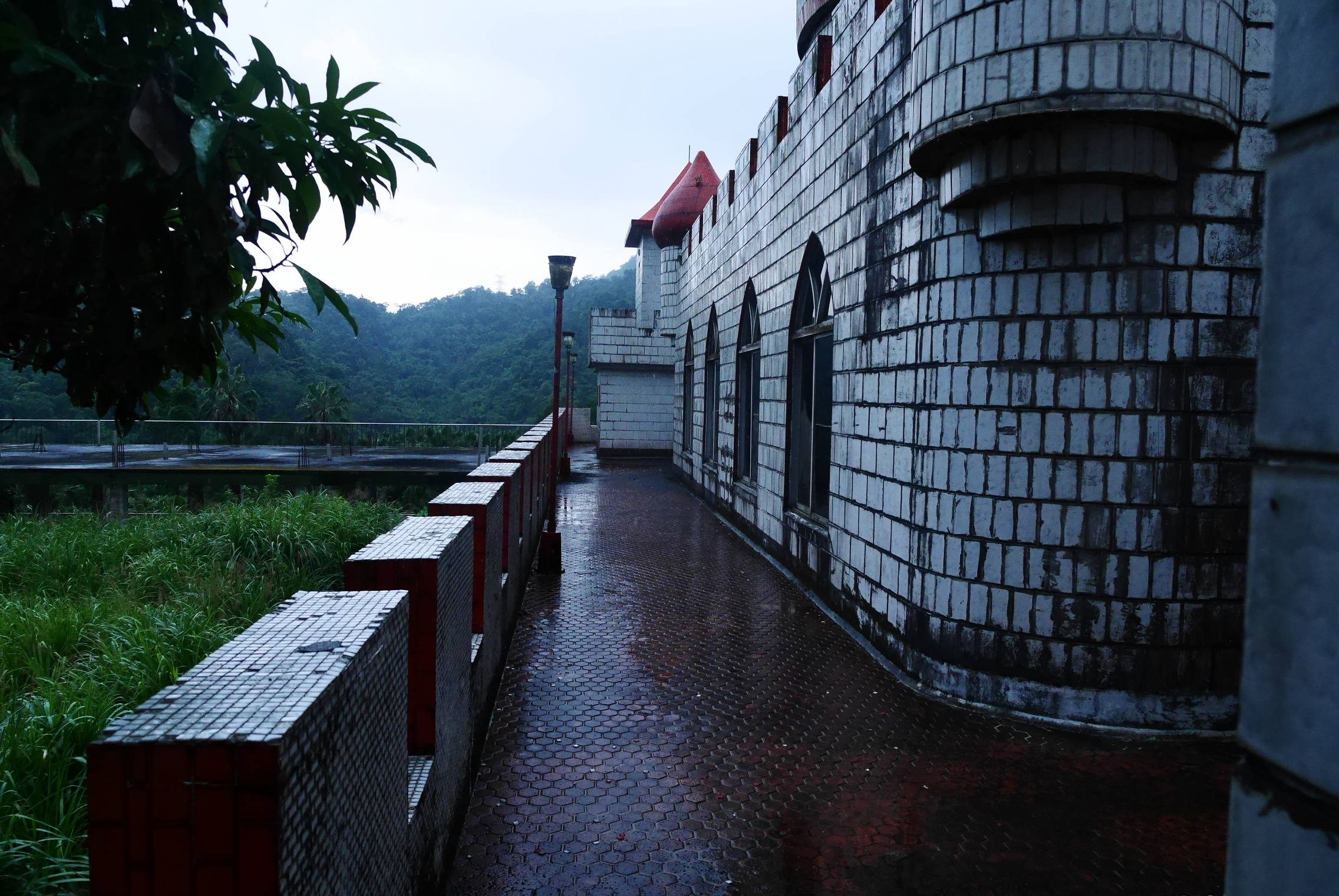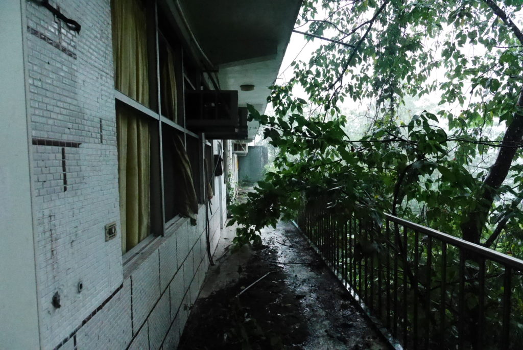 Feeling satisfied with my exploration of the hotel we walked back up, the rain getting less and less all the way. Since it was still raining a bit, we put on our rain gear before getting on the bike which was lucky because just a short while later it started pouring down. Normally, riding in heavy rain is miserable but having had such a good urban exploration adventure I didn’t really care.