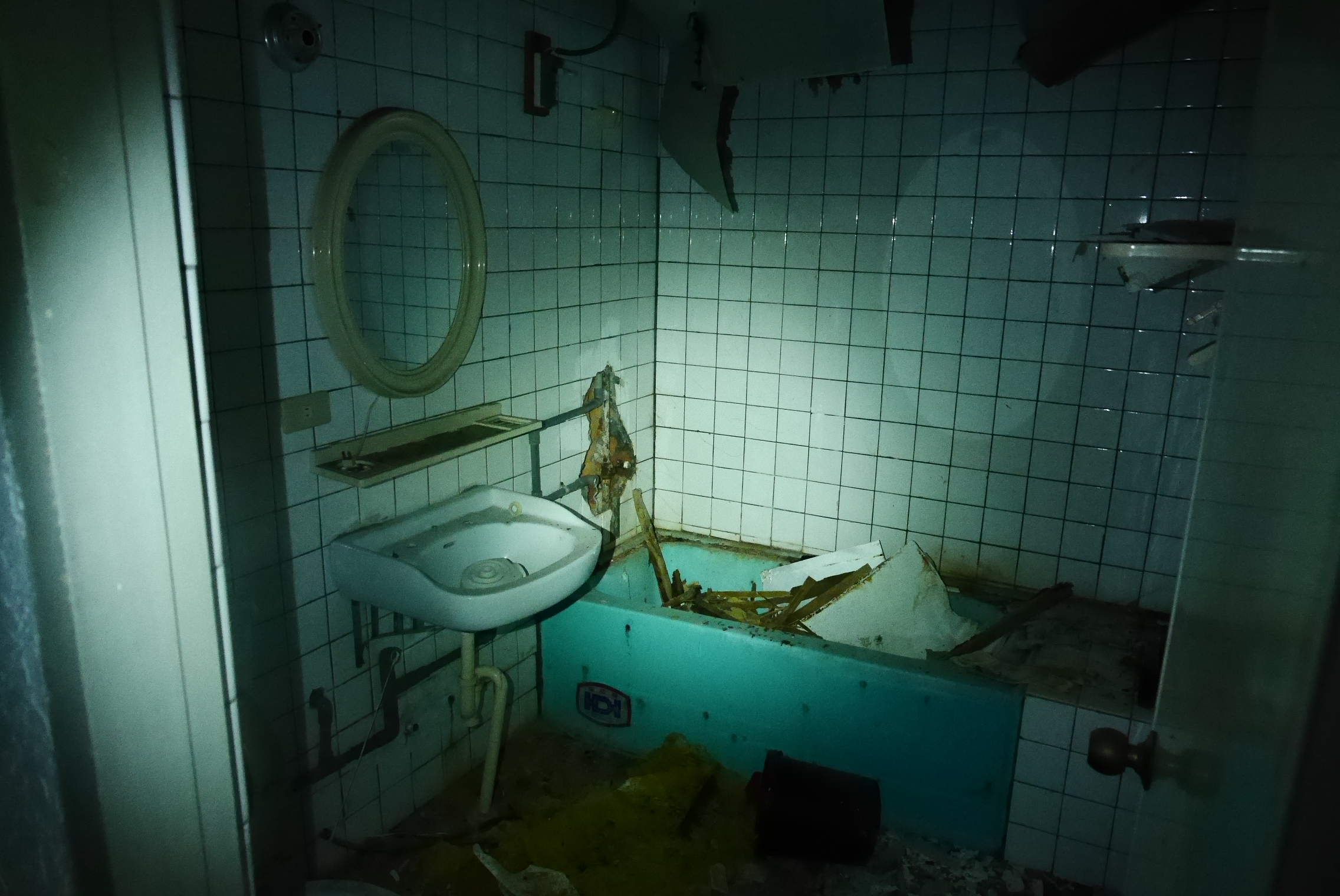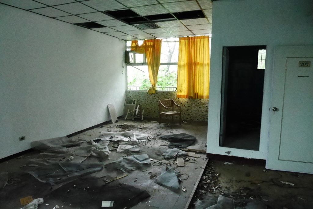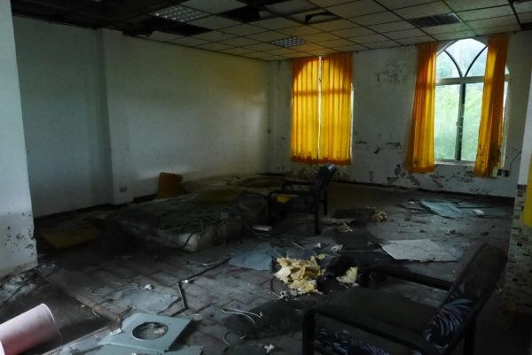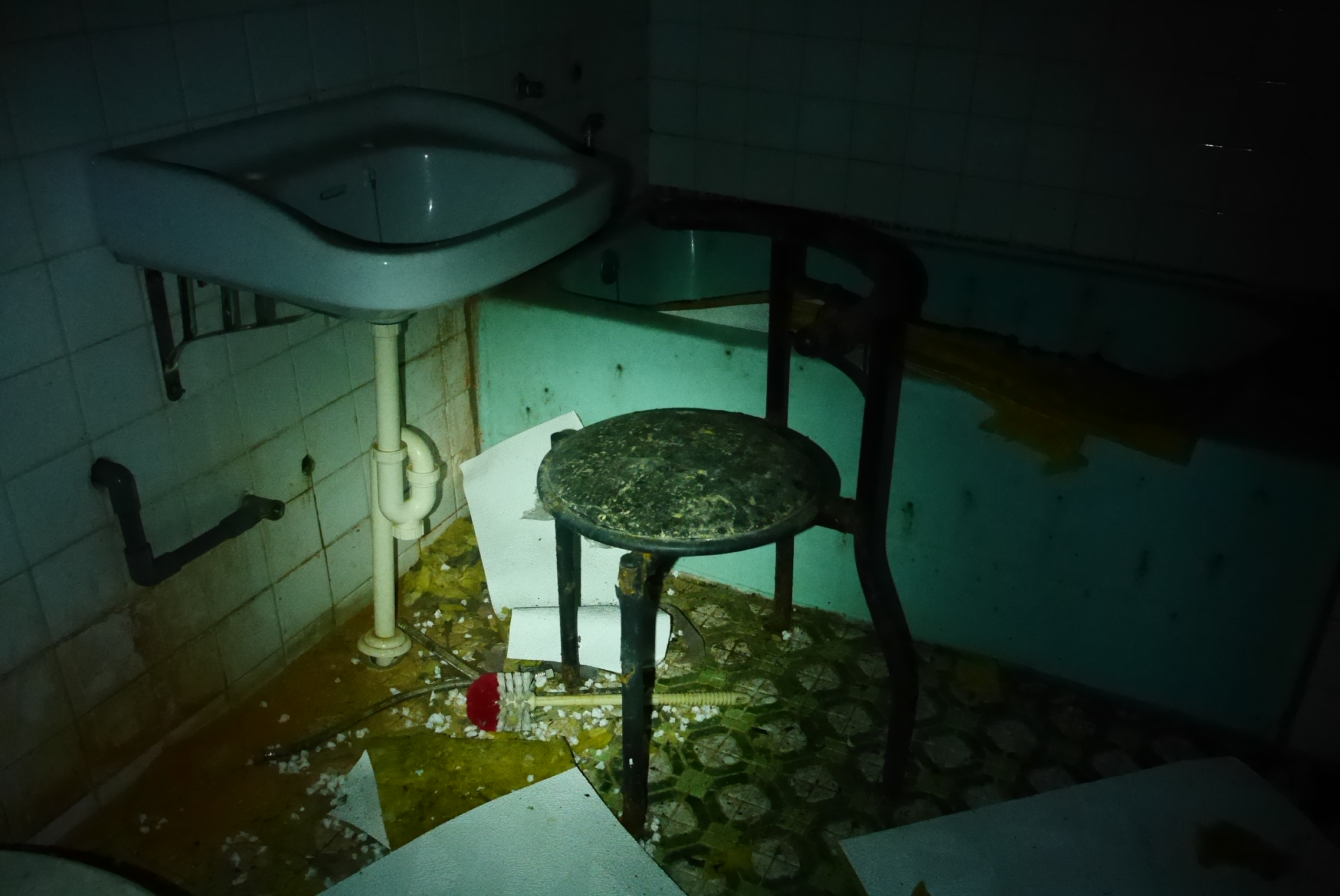 When I got inside I realized that the place must either be a hotel or some kind of dormitory. Considering that there was a water slide and a pool adjacent to it, I believe hotel is the more likely answer. There were plenty of rooms that were more or less the same so I didn’t go in to all of them but it was interesting all the same. I must admit though that even I found it a bit creepy, especially since it was so dark I had to use my flashlight.