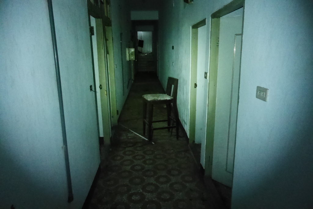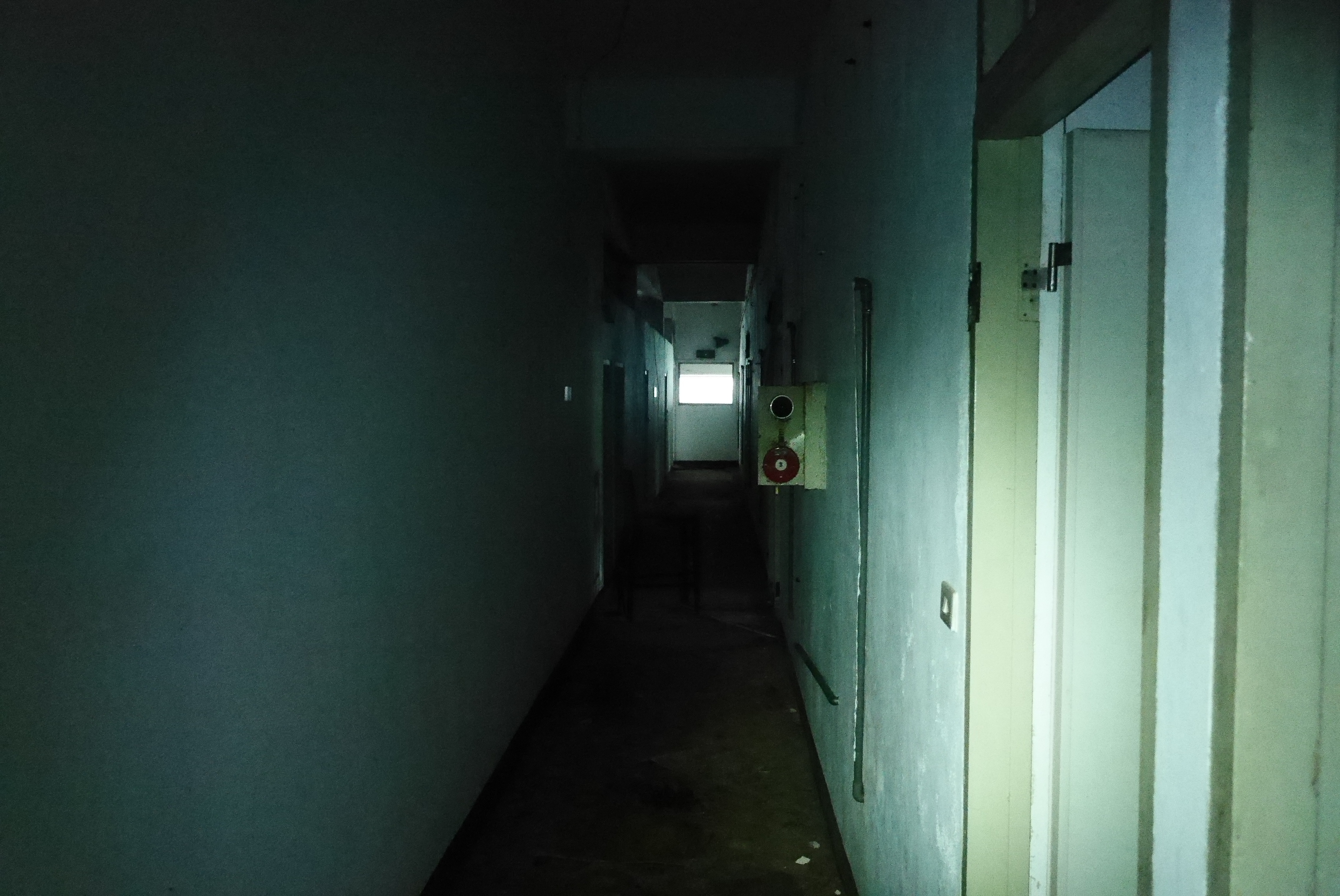 The main corridor on the ground floor. Even with the flashlight it’s still dark.